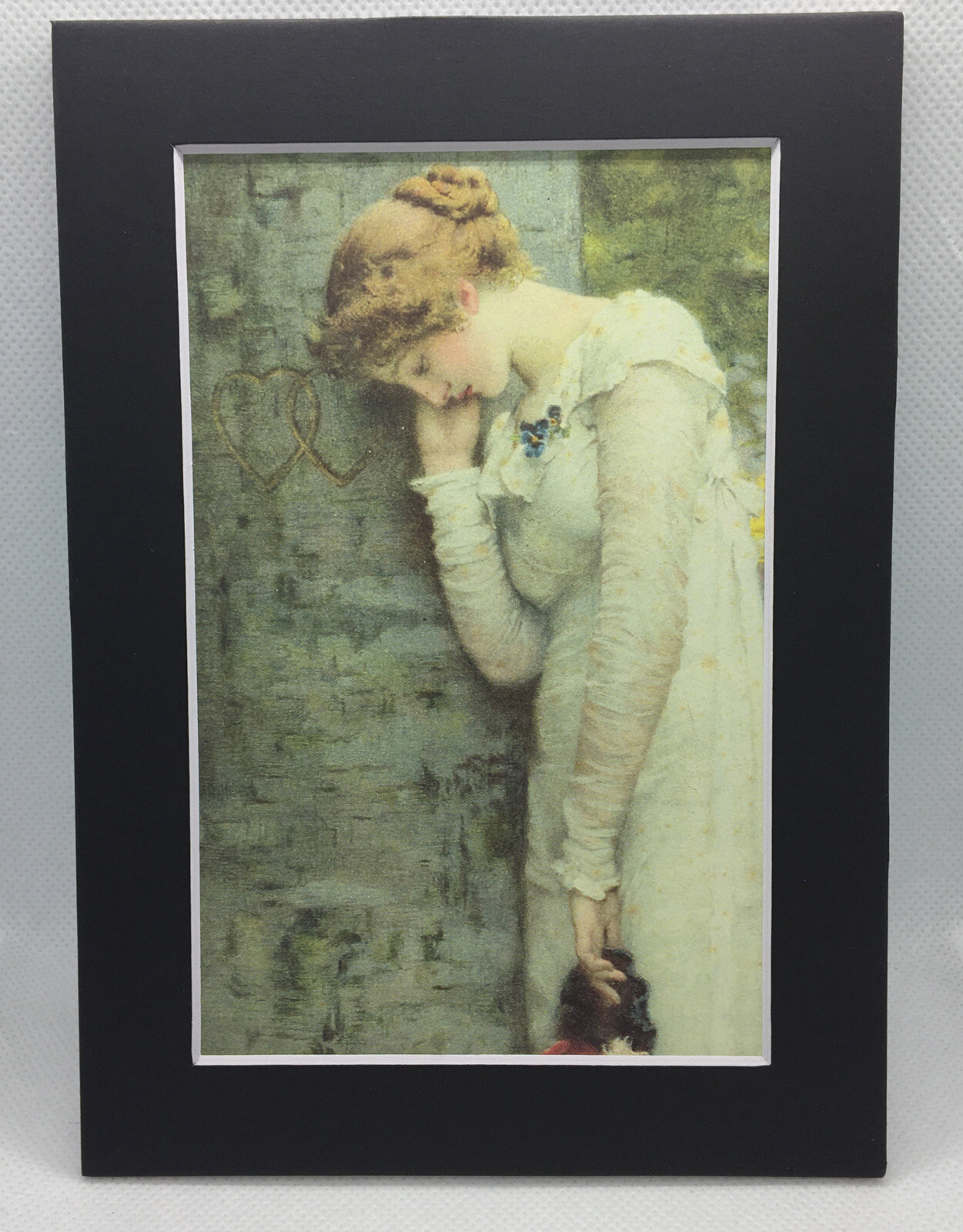 New Handmade 5x7 Matted Old Fashioned Woman Carved Hearts Tree Free Ship 108