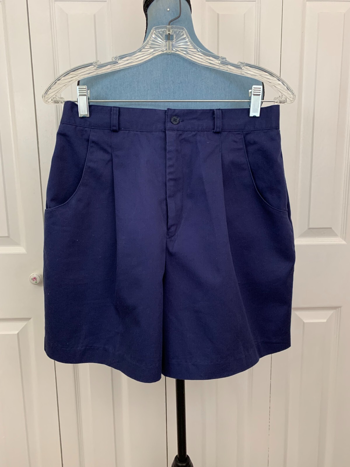 как выглядит Vintage 1980s Collections Navy Blue Pleated High Waist Shorts Pockets Size 14 фото