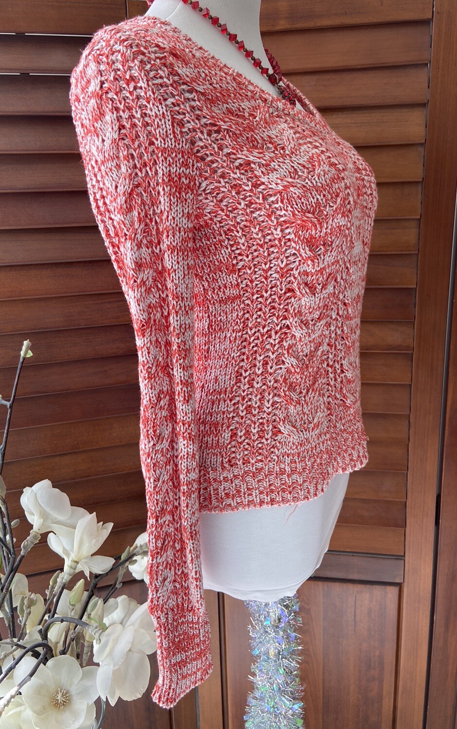 как выглядит Free People Sweater Red White Cable Knit Womens SZ S фото