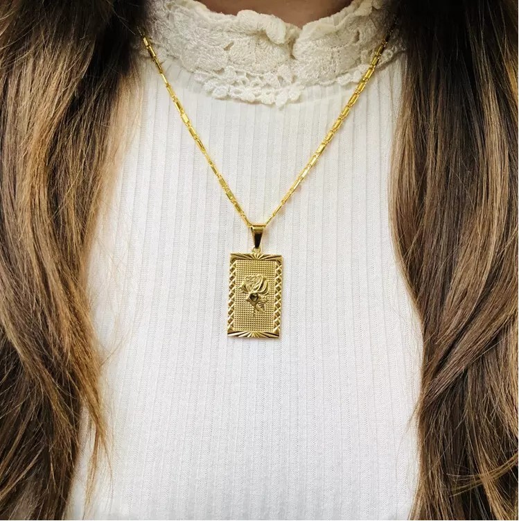 как выглядит 18K Gold Plated Stainless Steel Necklace Rose Flower Pendant Necklace фото