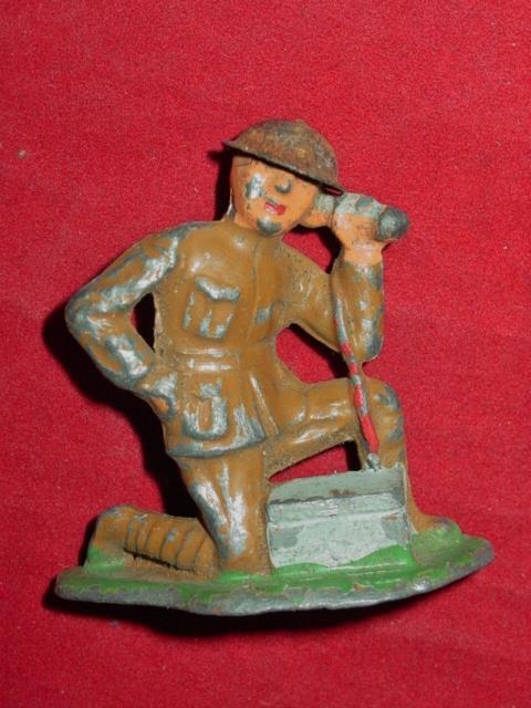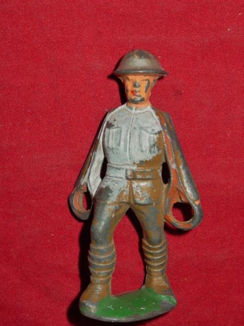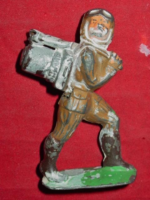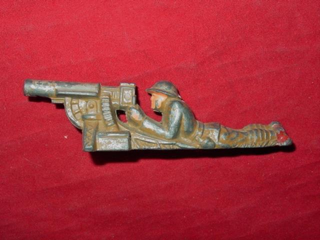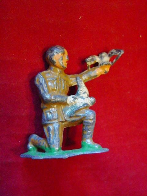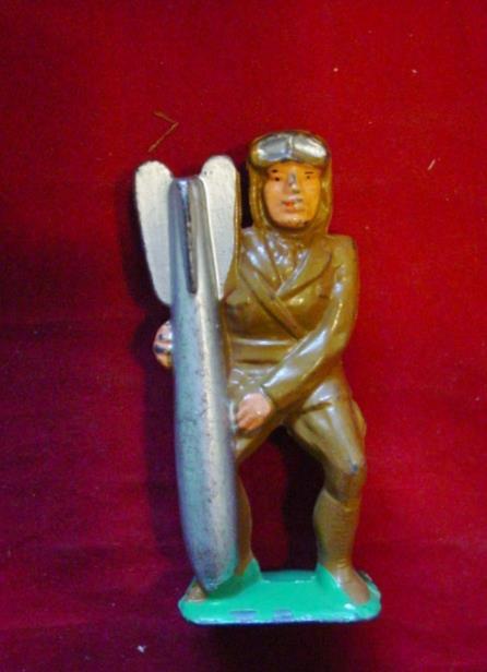 1930s BARCLAY MANOIL - 13 Lead Aviator, Gas Mask, Machine Gun ,Grenade Figures
