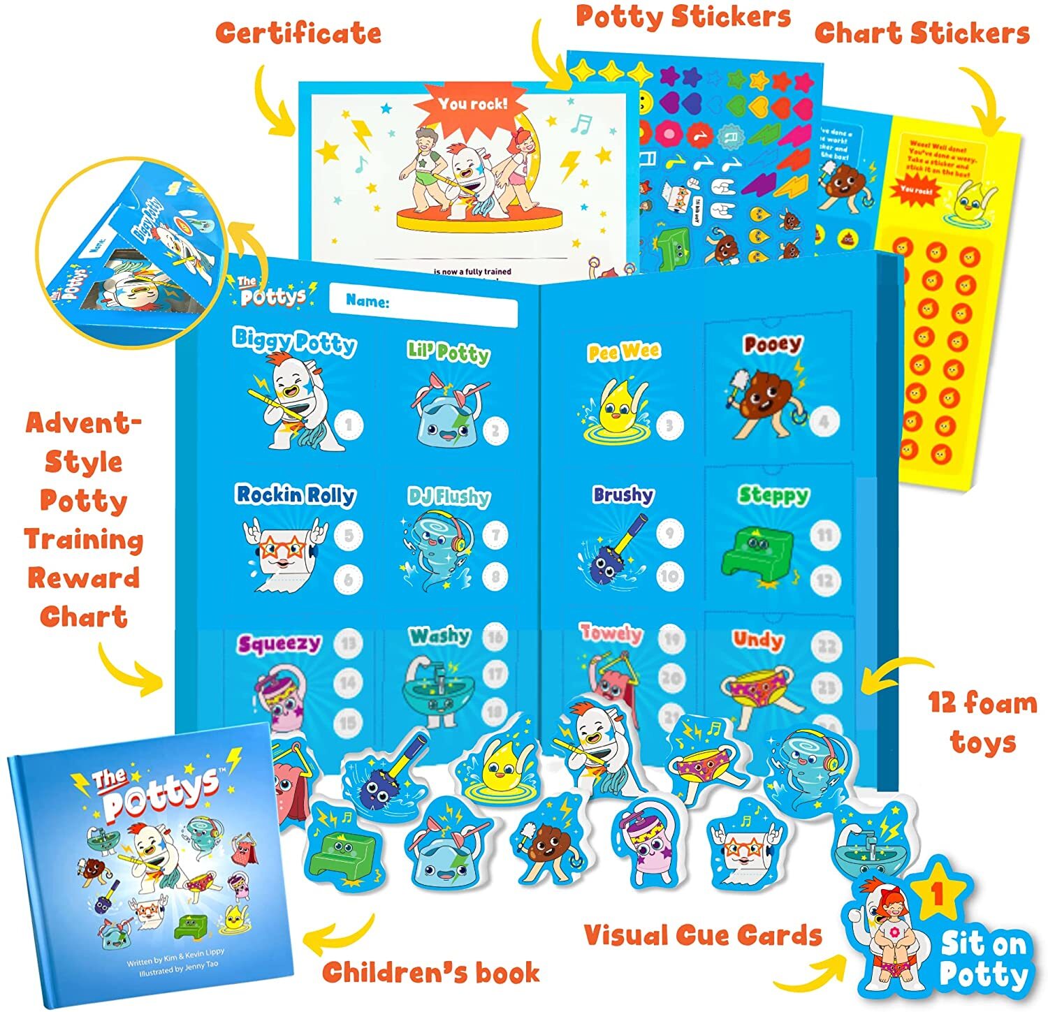 THE POTTYS - POTTY TRAINING REWARD CHART GAME - TOILET TRAINING REWARDS STICKERS