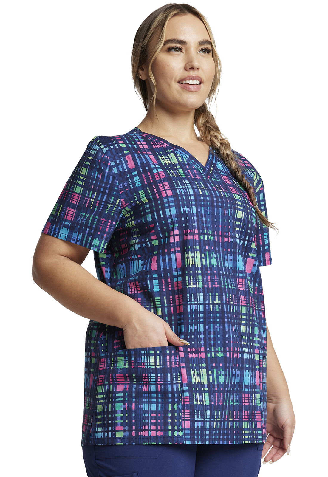 Glowing Plaid Dickies Scrubs EDS V Neck Top DK704 GWPD