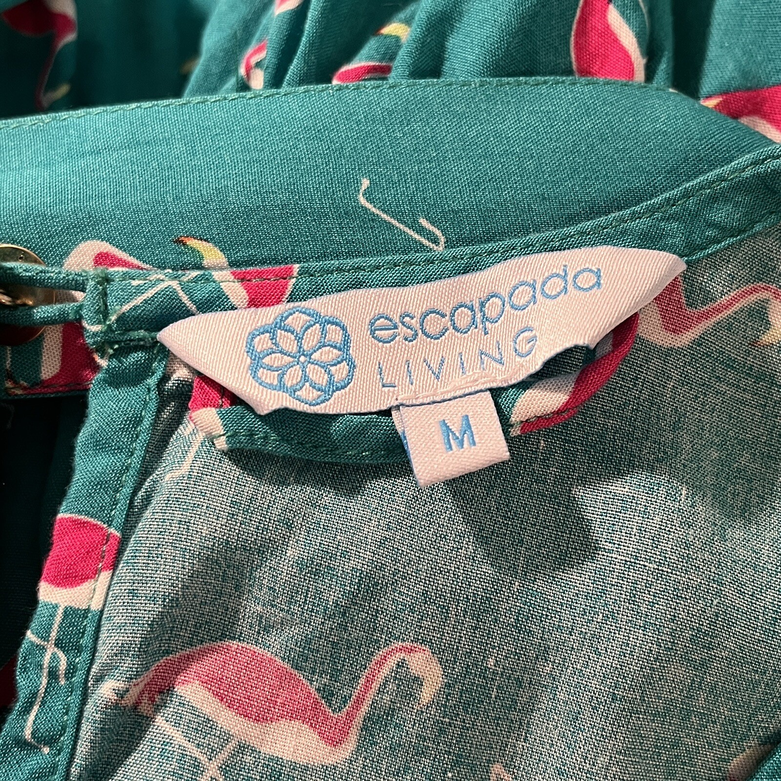 Escapada Living Size M Romper Shorts Flamingo Print Ruffled Bell Sleeves