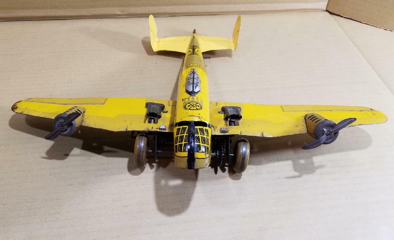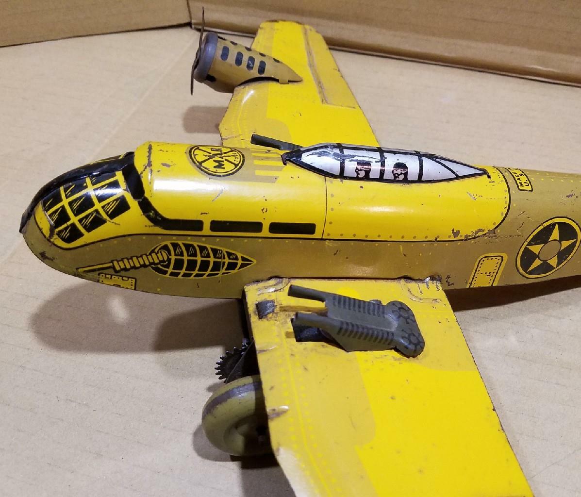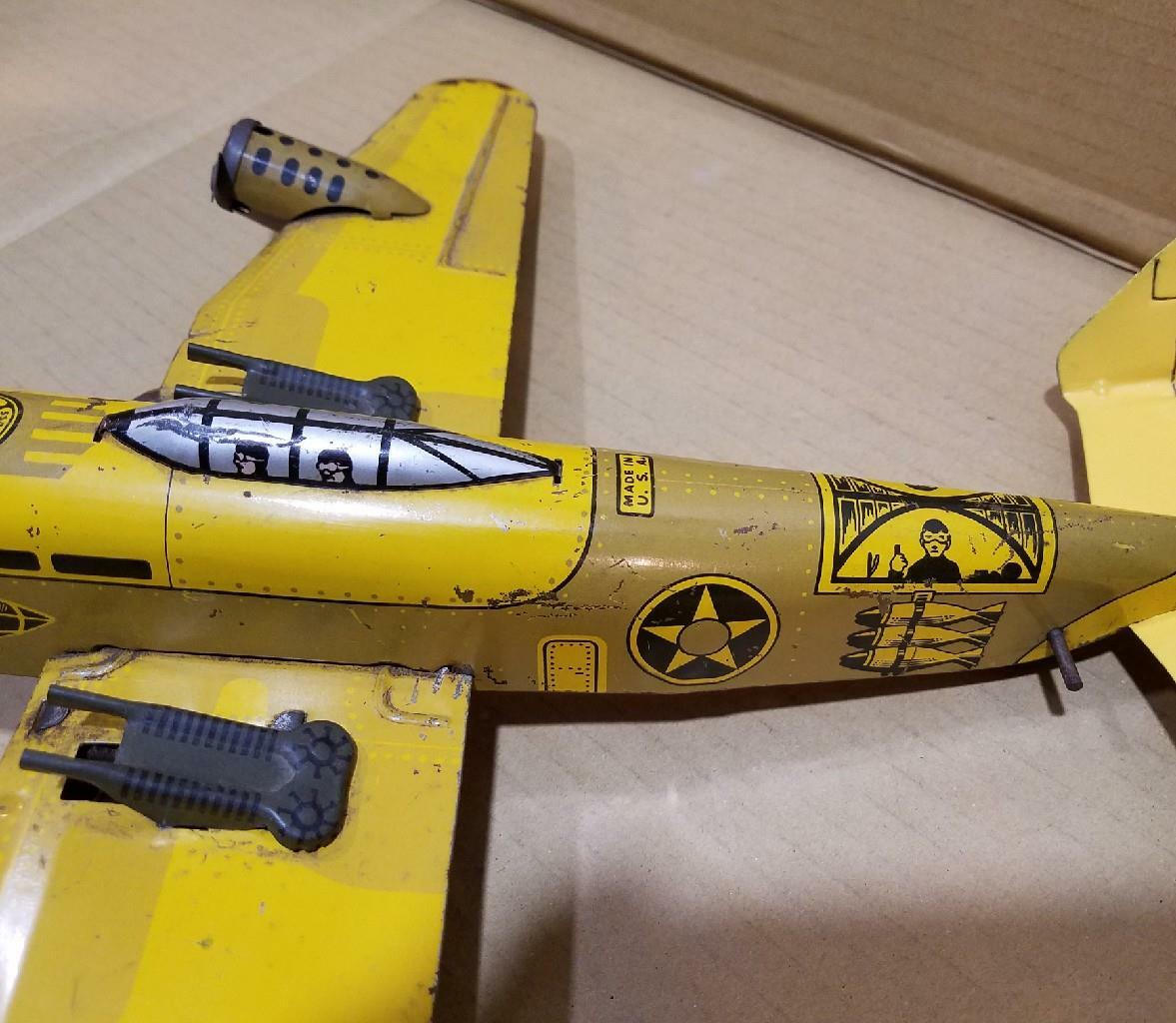 как выглядит VINTAGE MARX WIND UP TIN WWII US BOMBER PLANE - 18" WINGSPAN - COMPLETE - WORKS фото