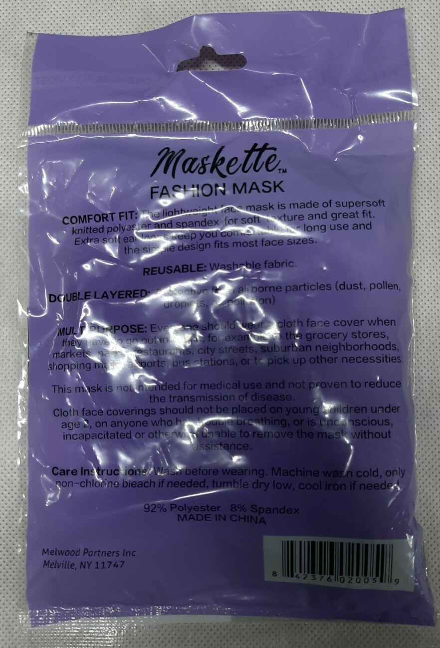 Maskette Fashion Masks - 3Pk. - One-Size Fits Most - Washable/Reusable - SEALED