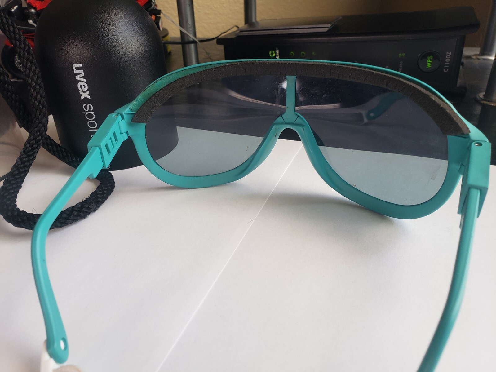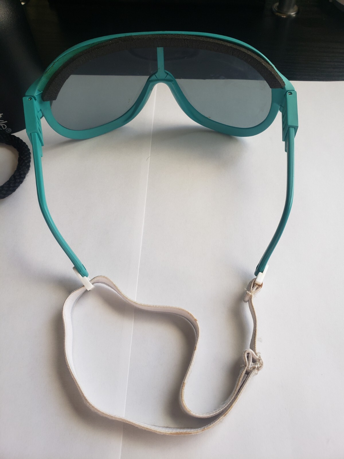как выглядит Vintage 80s 90s Uvex Teal Turquoise Shield Sunglasses W/Case RARE фото