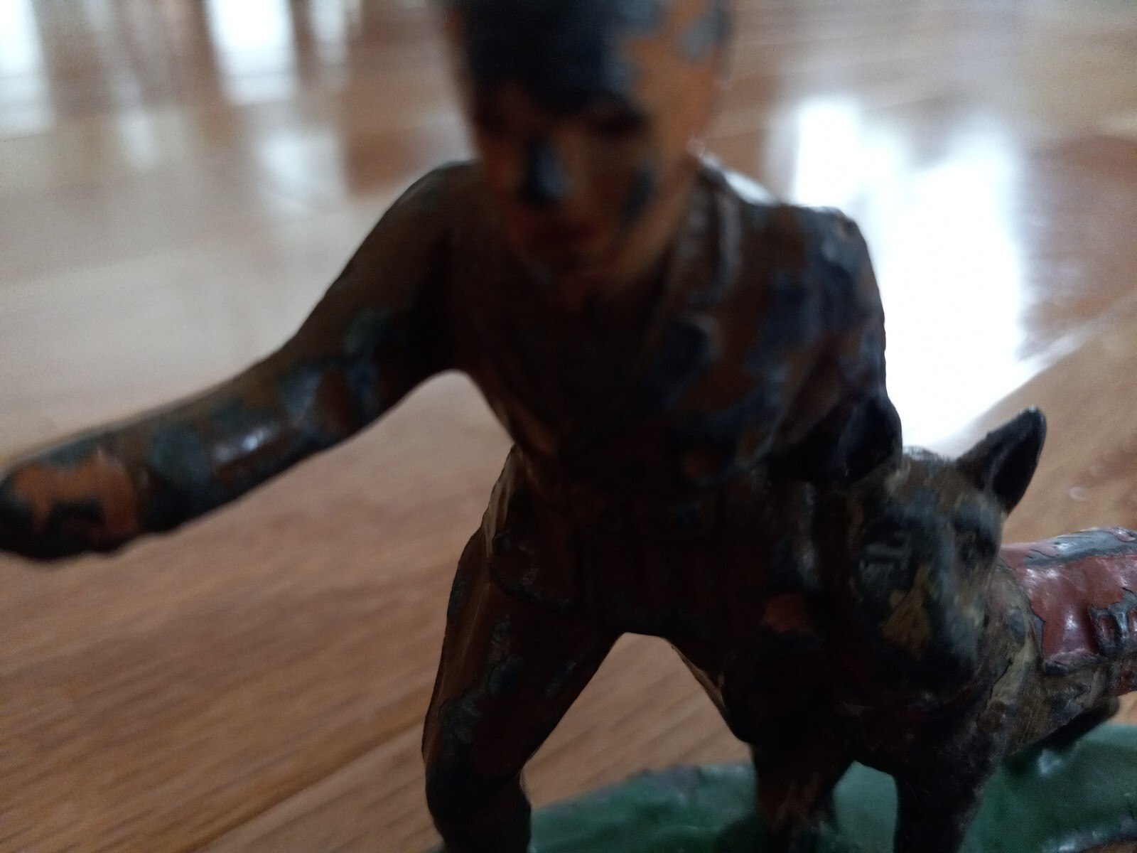 как выглядит VINTAGE TOY BARCLAY MANOIL LEAD TOY SOLDIER WITH GERMAN SHEPARD GUARD DOG фото