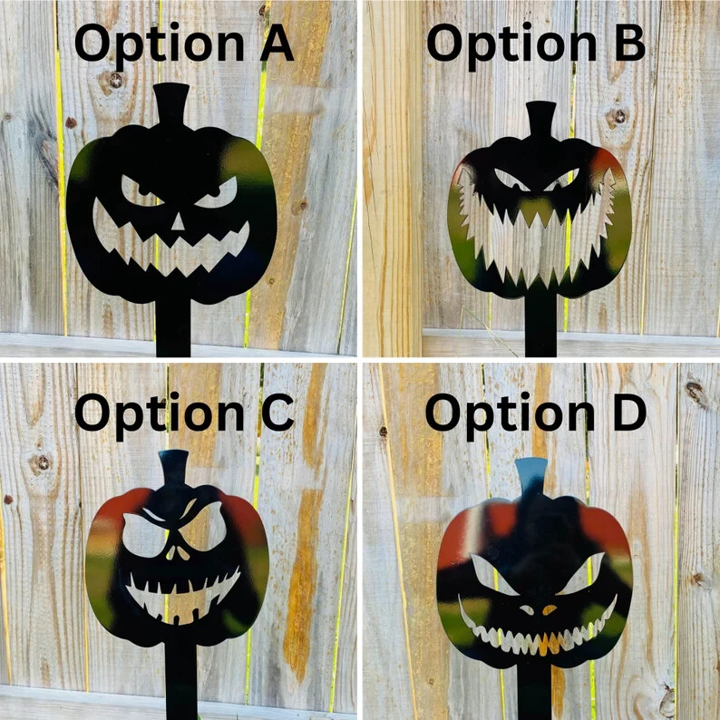 28 Metal Pumpkin Yard Stakes, Halloween Yard Stakes, Scary Halloween Decor