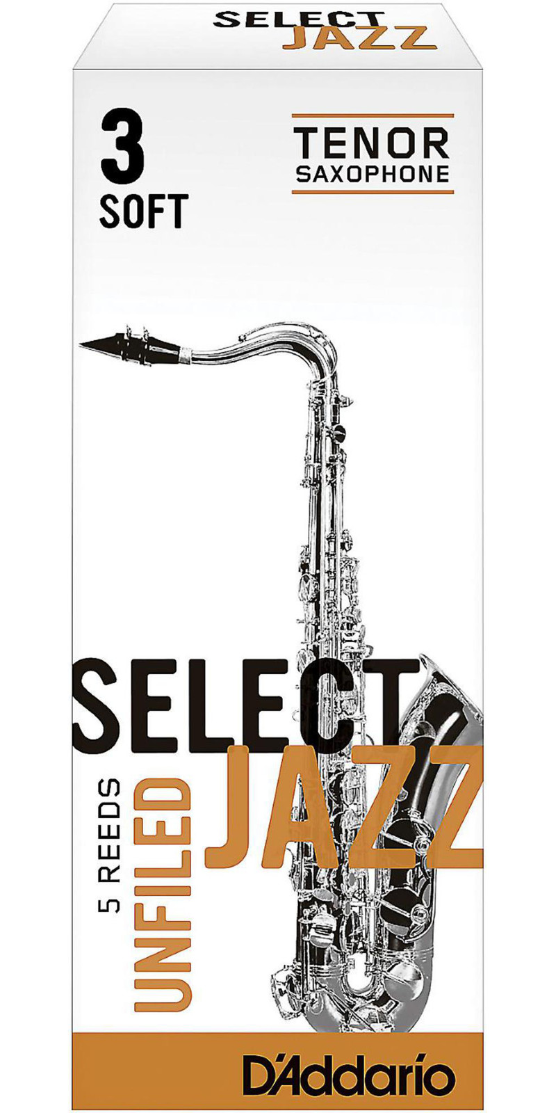 D'Addario Woodwinds Select Jazz Unfiled Tenor Sax Reeds Strength 3 Soft Box of 5