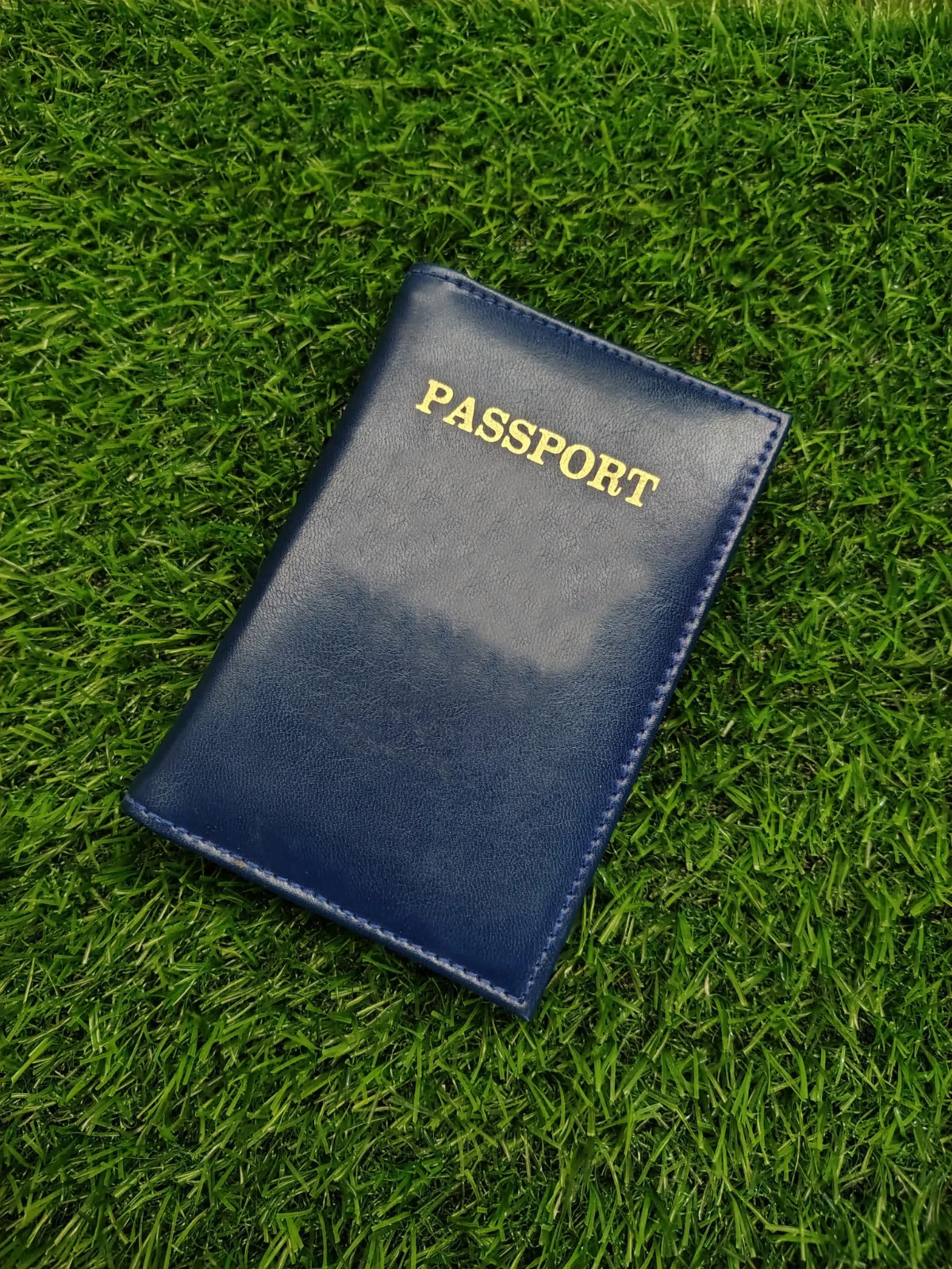 Vegan Leather Blue Passport Cover, Travel ID Holder Passport Wallet for Unisex