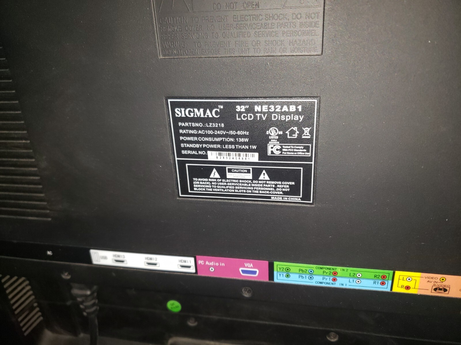 Sigmac NE32AB1 32 LCD HDTV - 1080p, 1920 x 1080, 16:9, 120Hz, 10000:1, HDMI, PC
