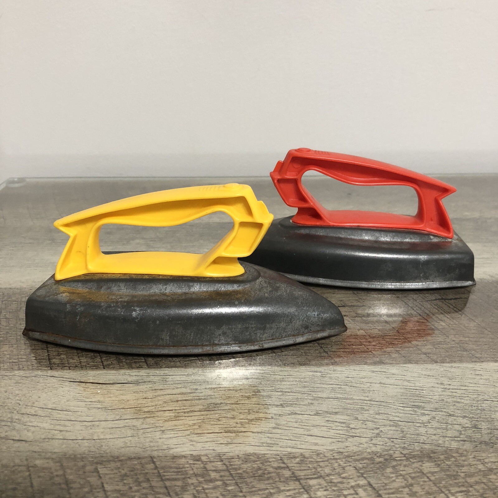 Vintage Set of 2 Toy Wolverine Tin / Plastic Handle Play Irons Made in USA