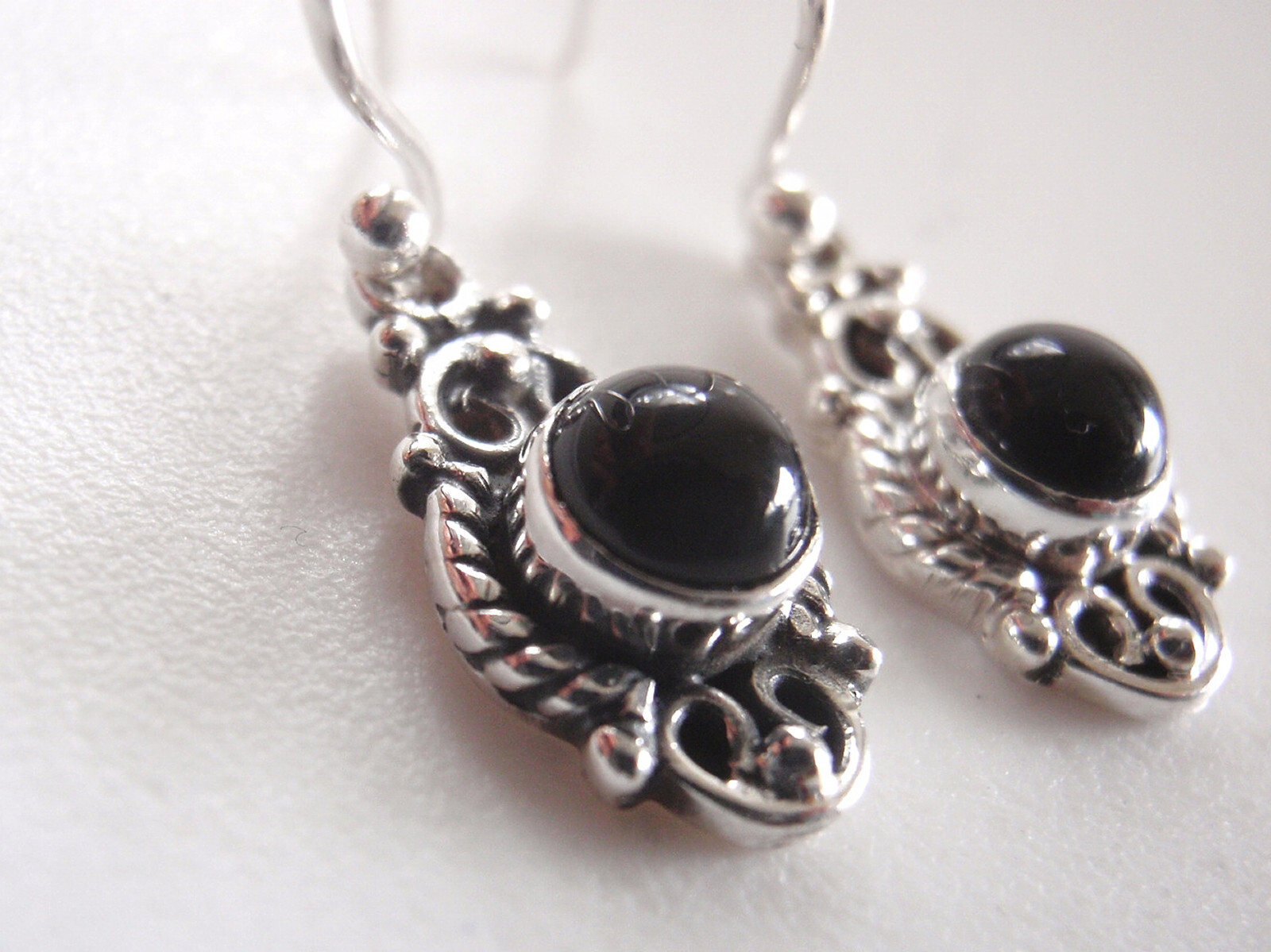 Round Black Onyx 925 Sterling Silver Dangle Earrings Small