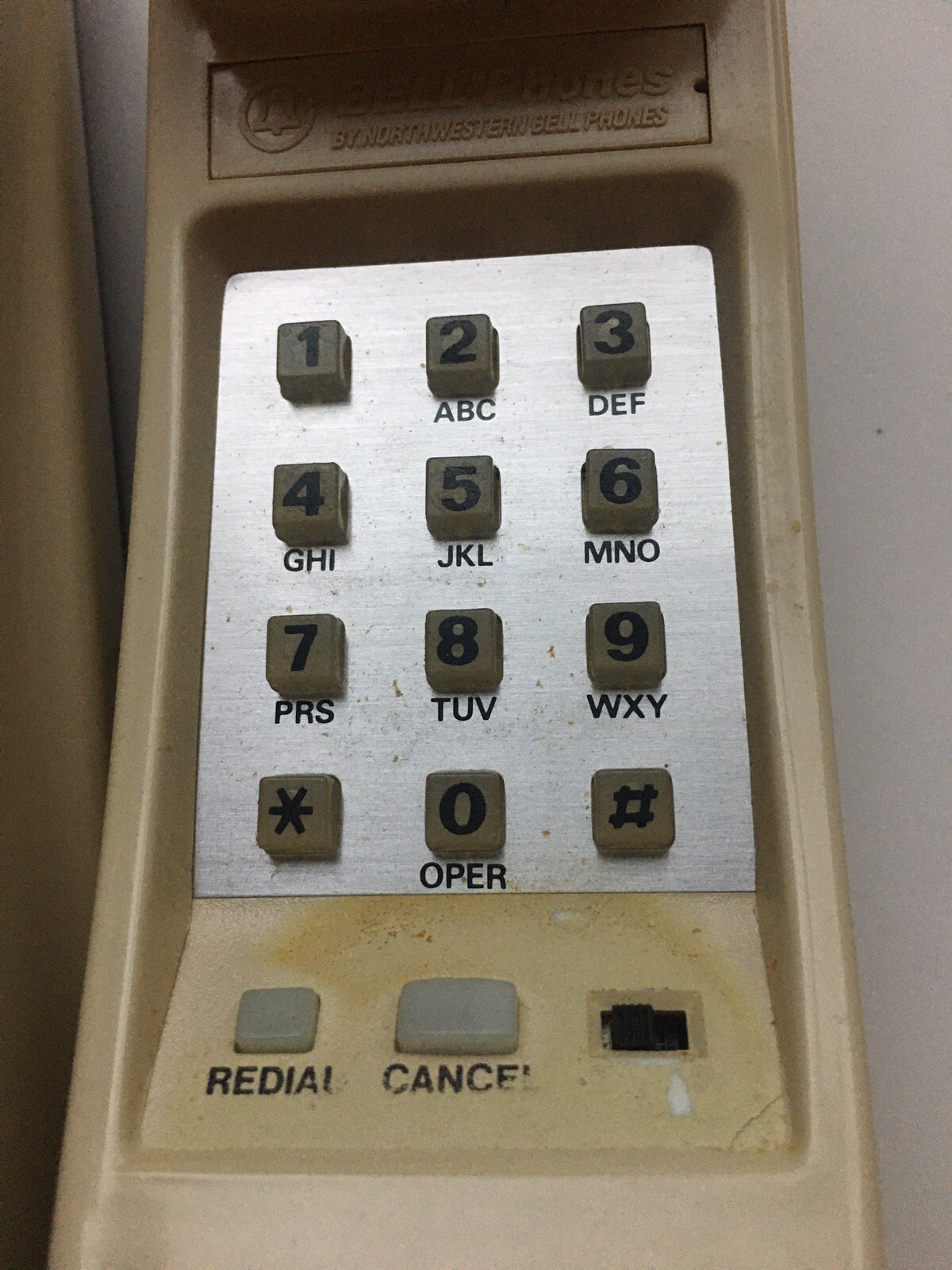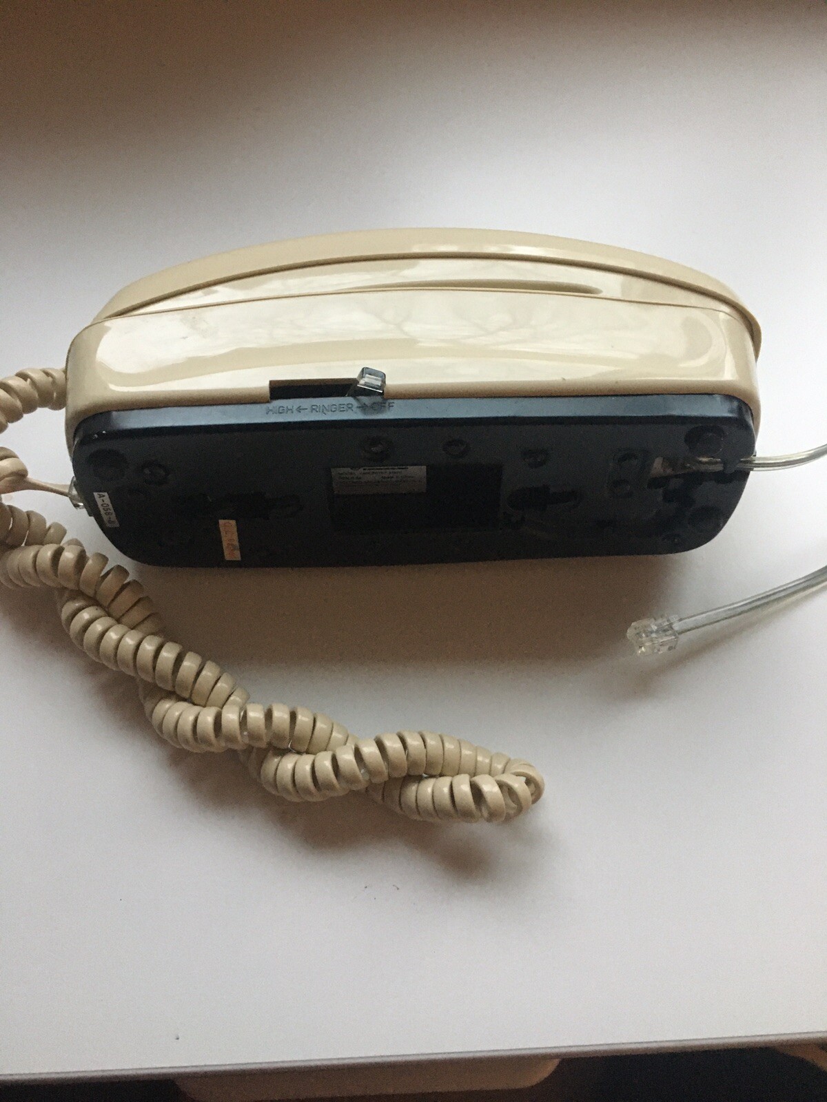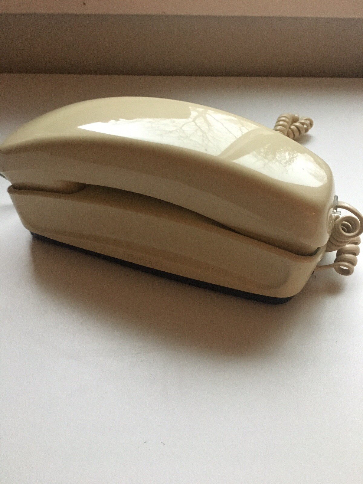 • Slimline Telephone Wall Or Desk Phone Push Button Beige Vintage Bell Model 51870