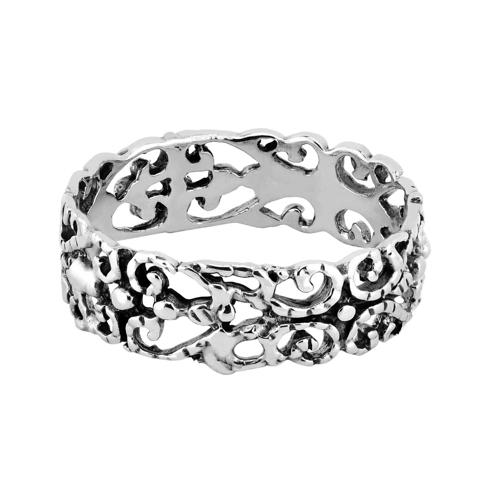 как выглядит Alluring Modern All-around Filigree .925 Sterling Silver Band Ring-8 фото