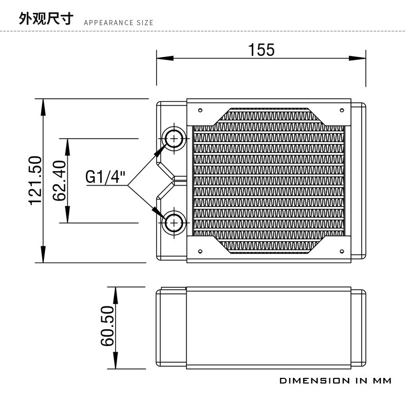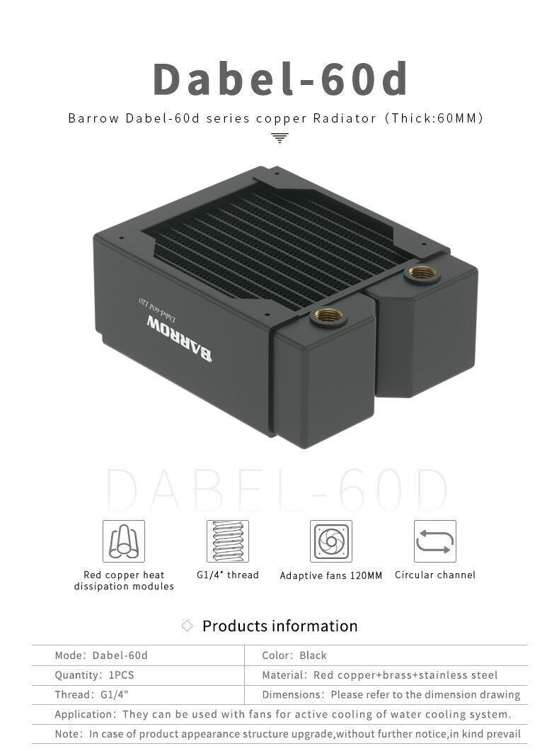 Barrow Dabel 120mm Red Copper Radiator 60mm Thick High Performance, Black