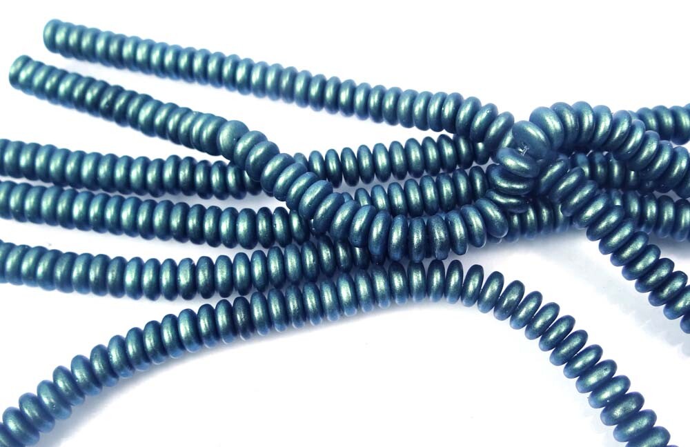 как выглядит 50 Czech Glass Rondelle Beads - Polychrome - Aqua Teal 6x2mm фото