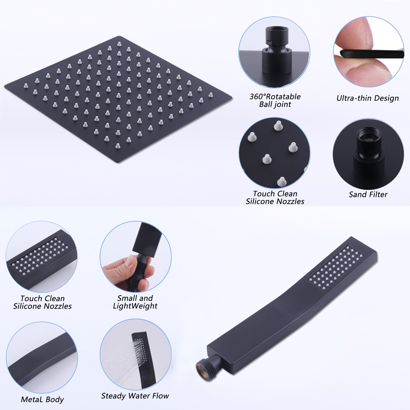Matte Black 8 In All Metal Rain Shower Head With Handheld Combo Extension Arm