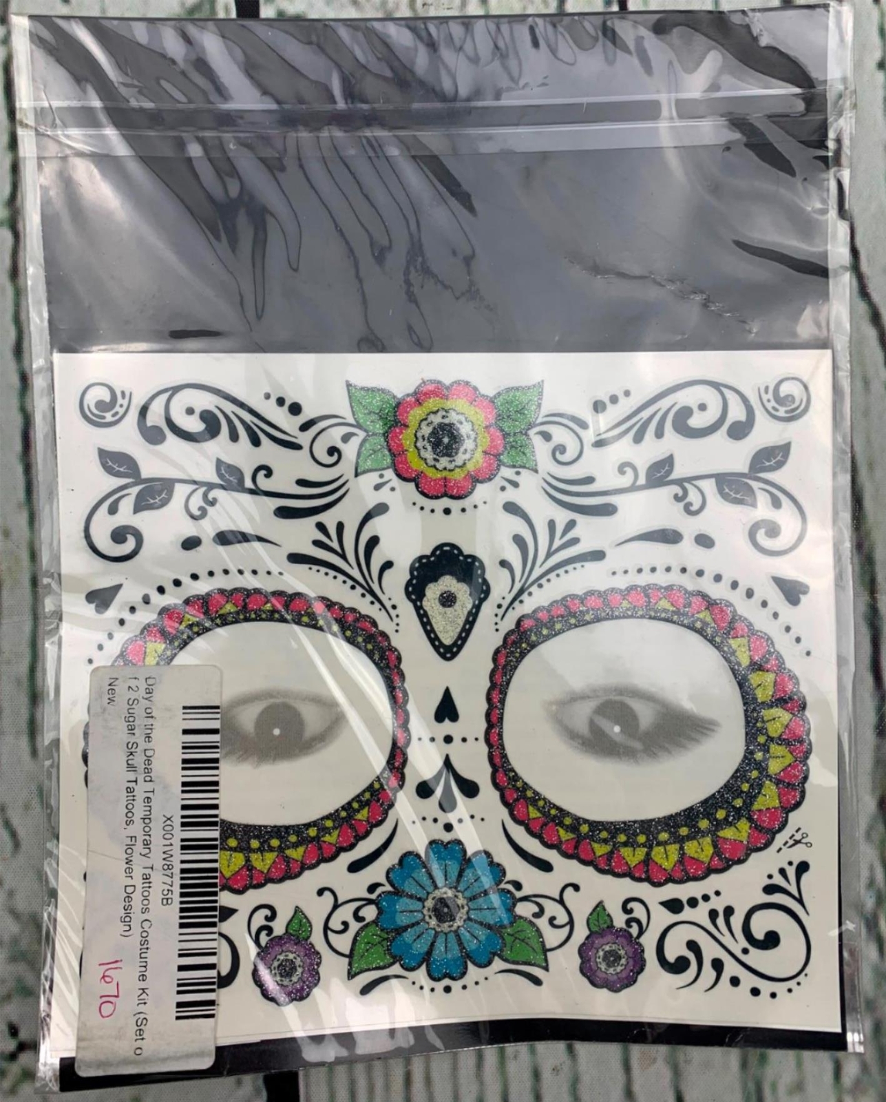 как выглядит Glitter Red Roses Day of the Dead Sugar Skull Temporary Face Tattoo Kit фото