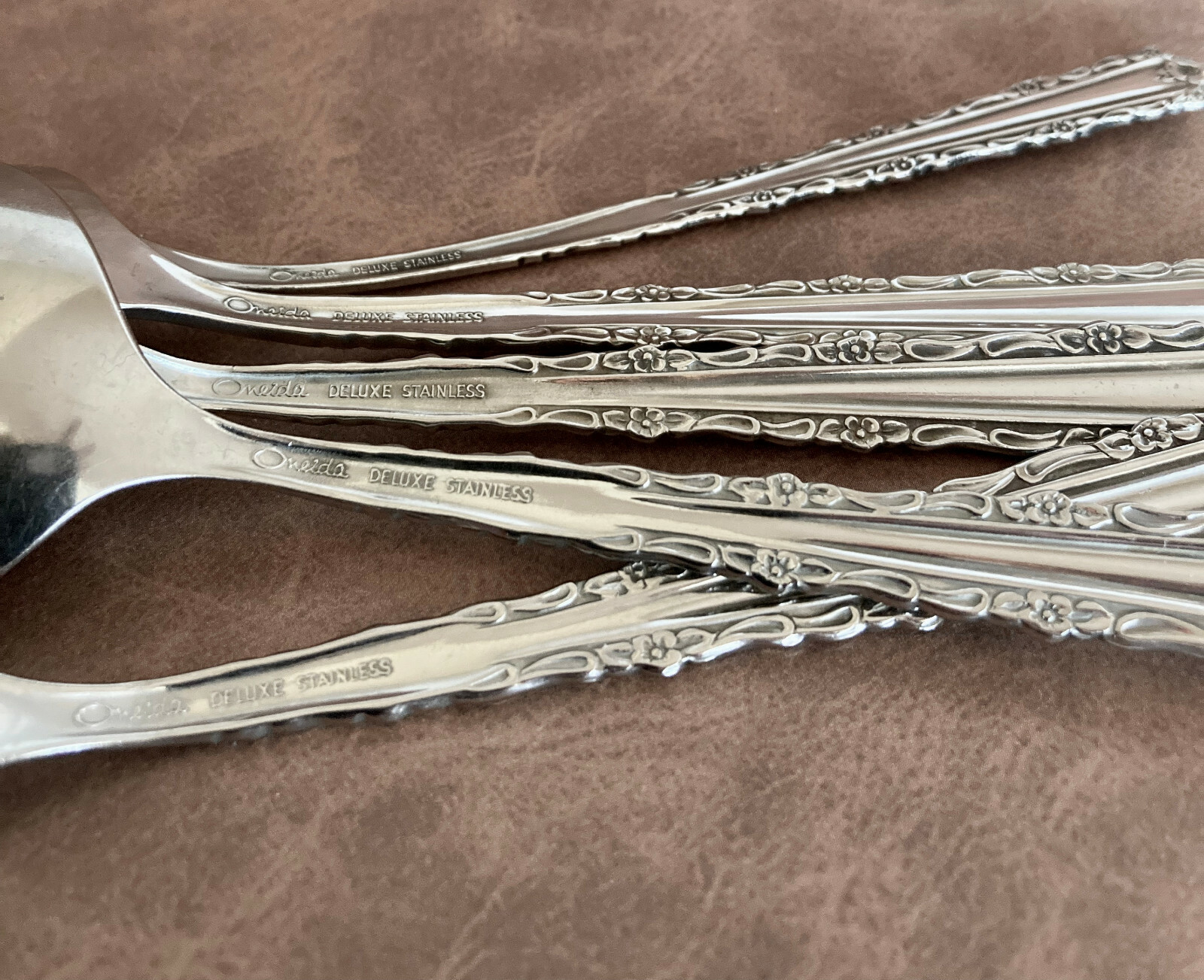 Oneida Deluxe CHERIE 2 Teaspoons, 2 Soup Sps, 1 Infant Spoon Stainless Flatware