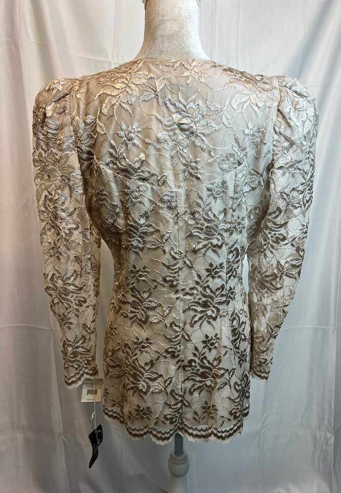 VTG 80s 90s Cachet by Bari Protas Beige Lace Formal Party Jacket Sz 11 / 12 178