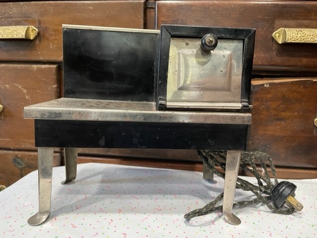 Vintage Antique Black Metal Toy Electric Stove Oven Metal Ware Corp Miniature