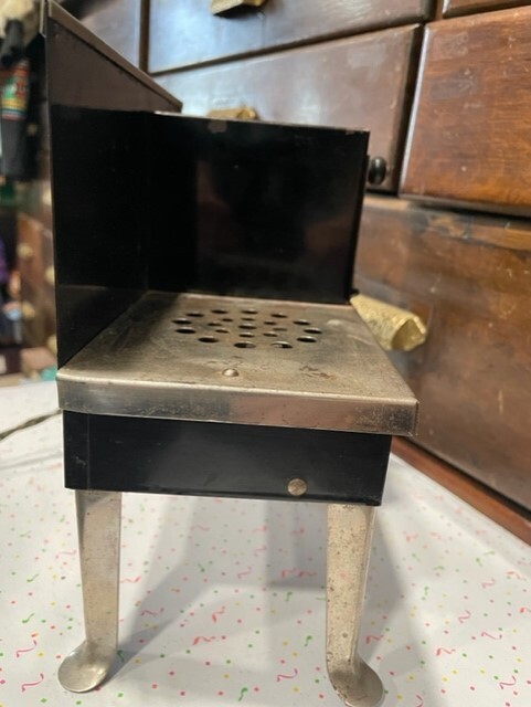 как выглядит Vintage Antique Black Metal Toy Electric Stove Oven Metal Ware Corp Miniature фото