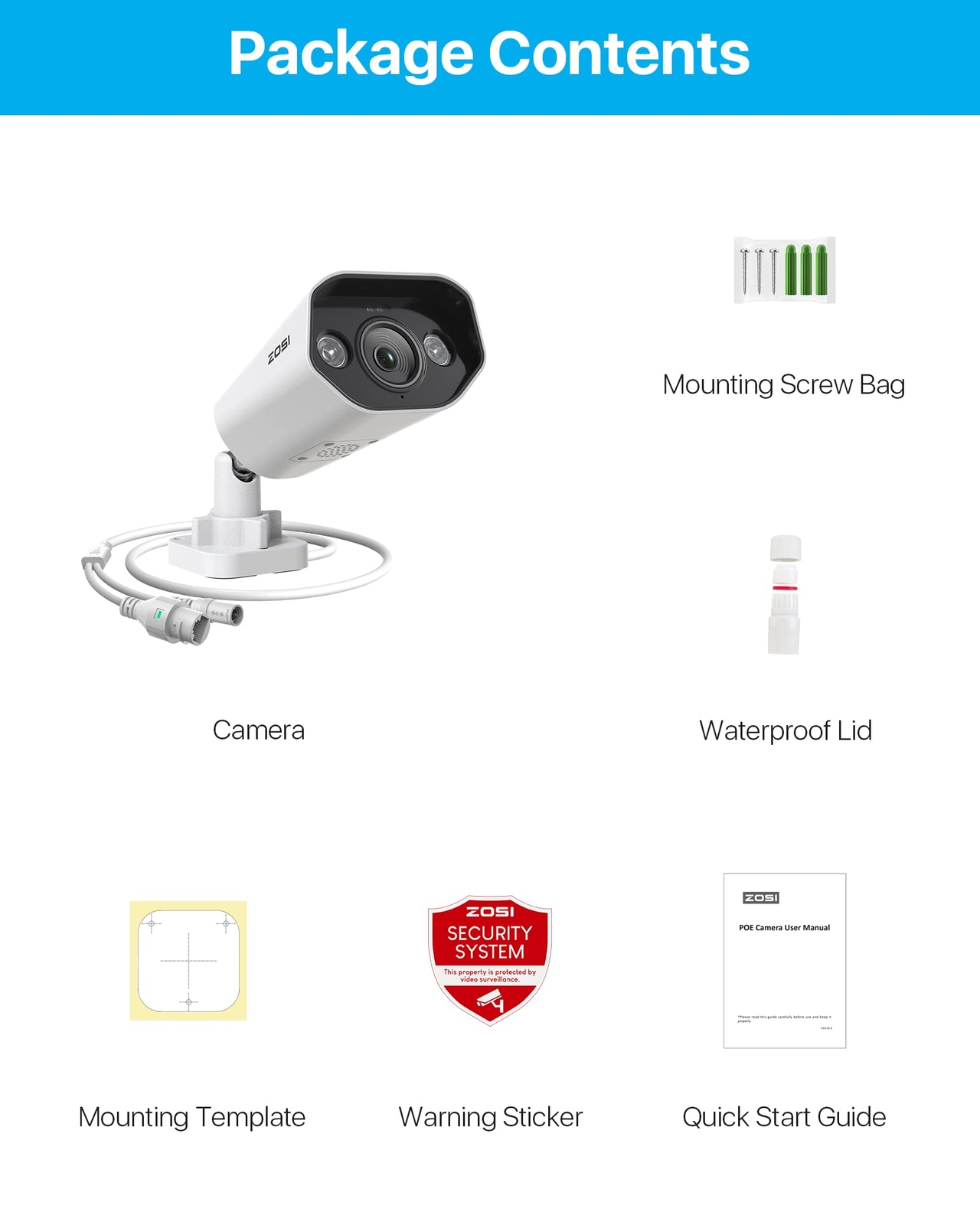 ZOSI 4K 8.0MP PoE IP Weatherproof CCTV Security Camera Color Night Vision Audio
