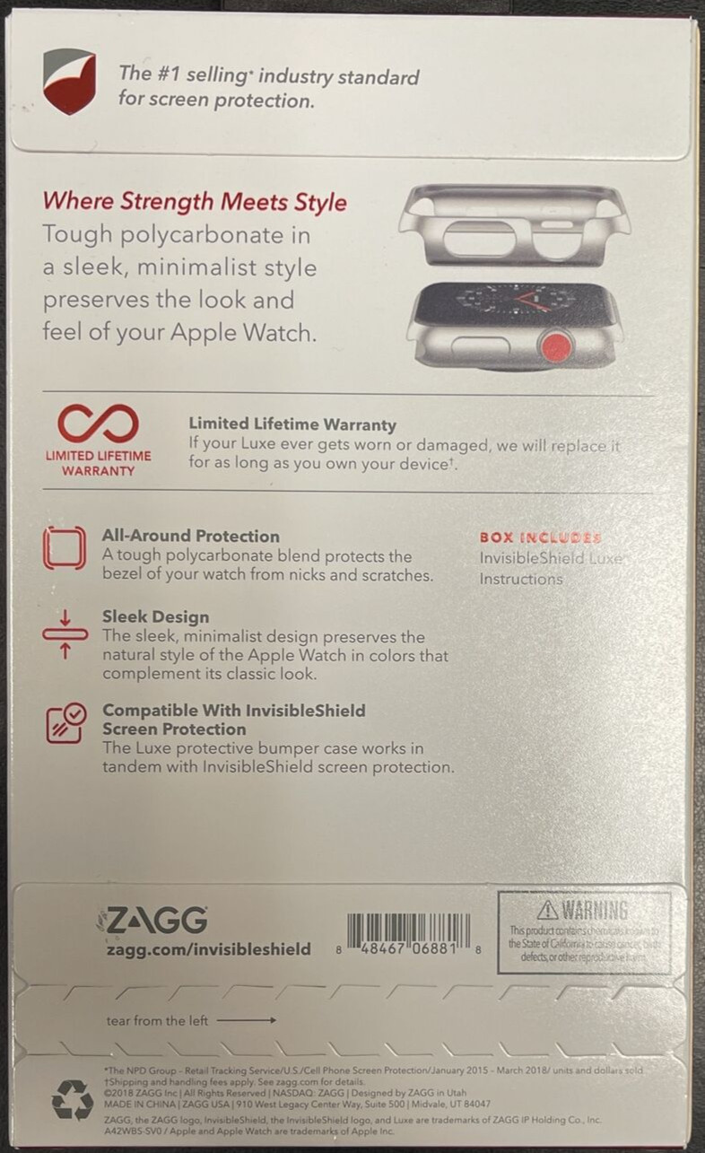 InvisibleShield Luxe Bumper Case 42mm Apple Watch Series 1, 2, 3 Case Silver