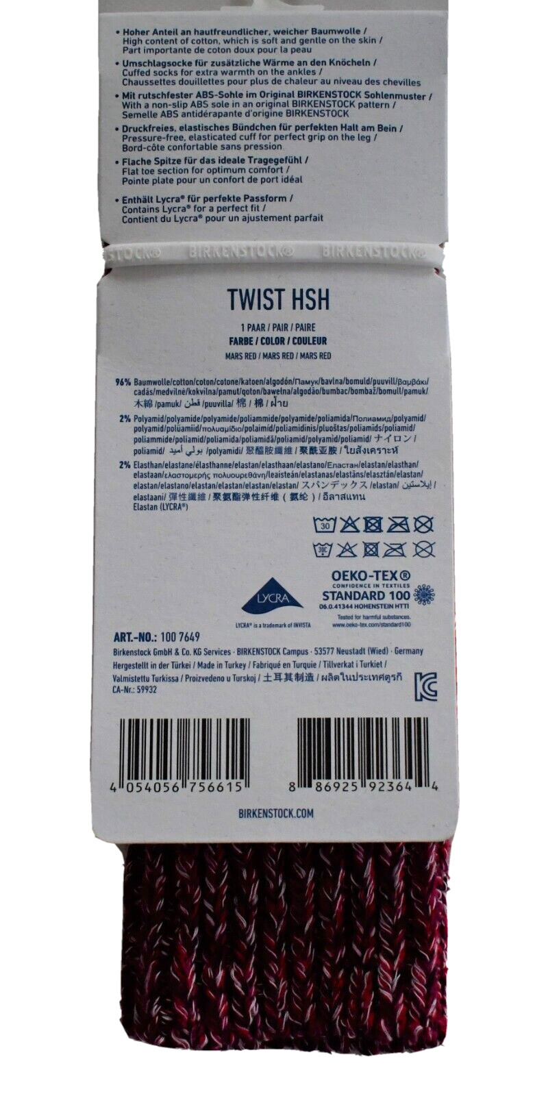 BIRKENSTOCK KIDS ABS TWIST HUSH Red COTTON GIRLS Socks C9-C11 EU 27-29 UK 9-11
