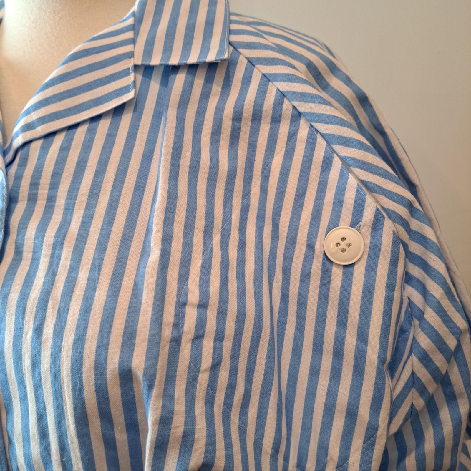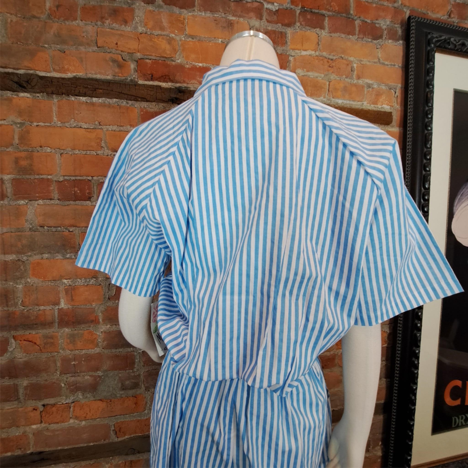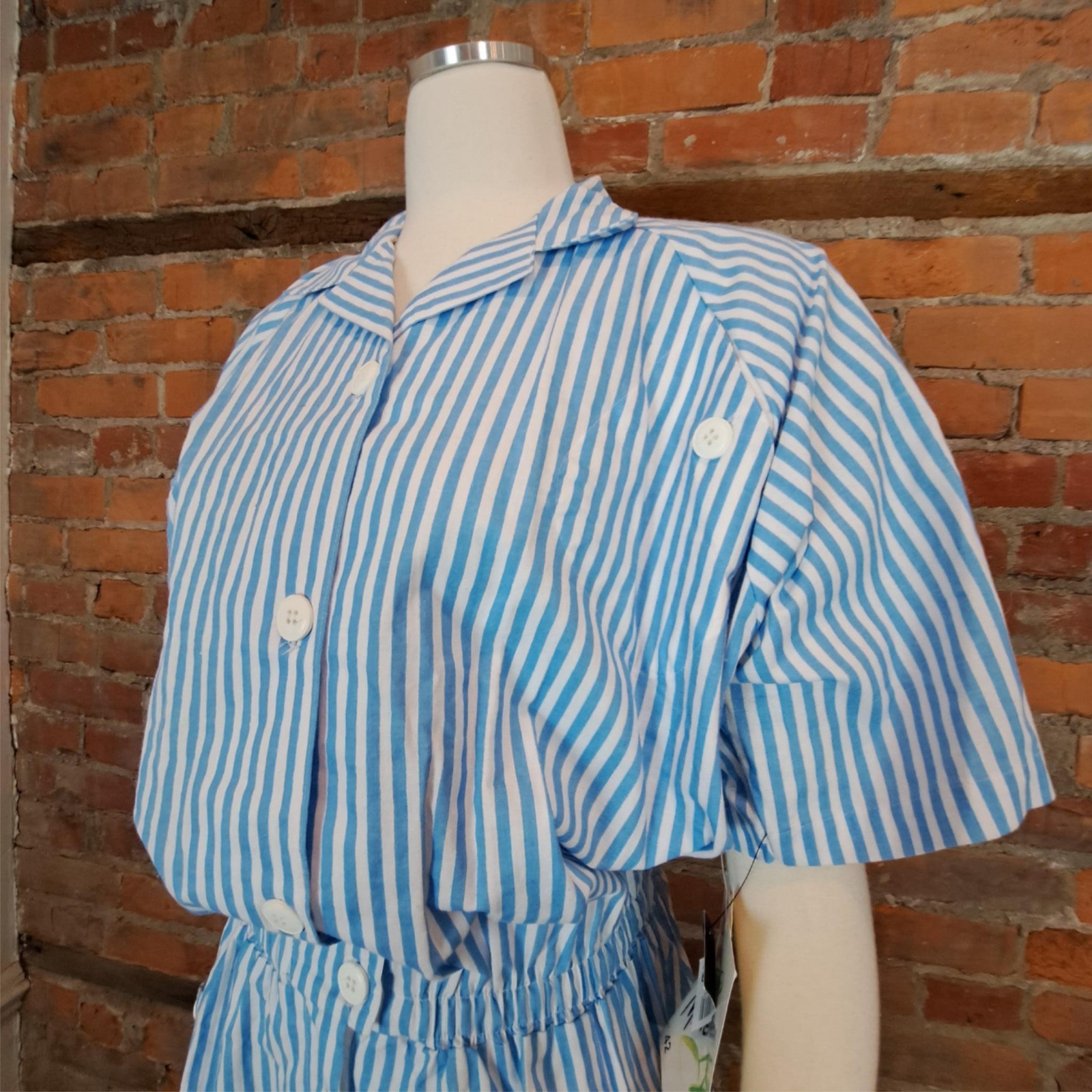 Vintage Womens Romper NWT Deadstock 1980s Blue White Stripes Size Button L