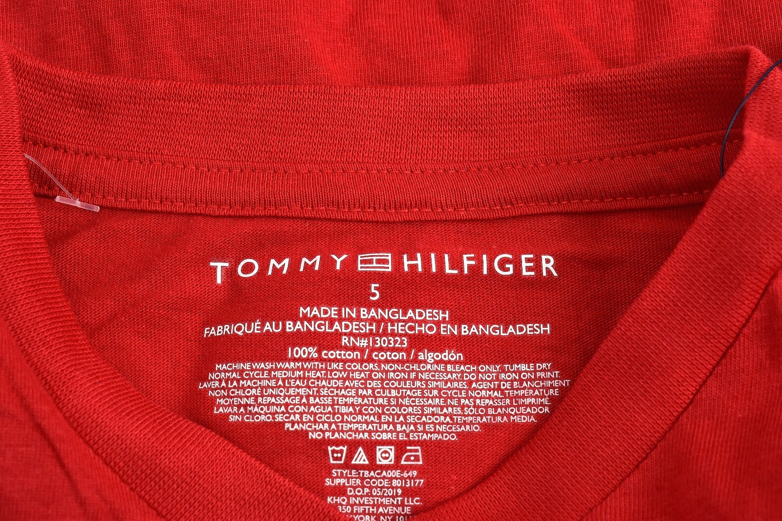 как выглядит Kids Boys Tommy Hilfiger Size 5 Scarlet Sage V-Neck T-Shirt Logo Tee NWT фото