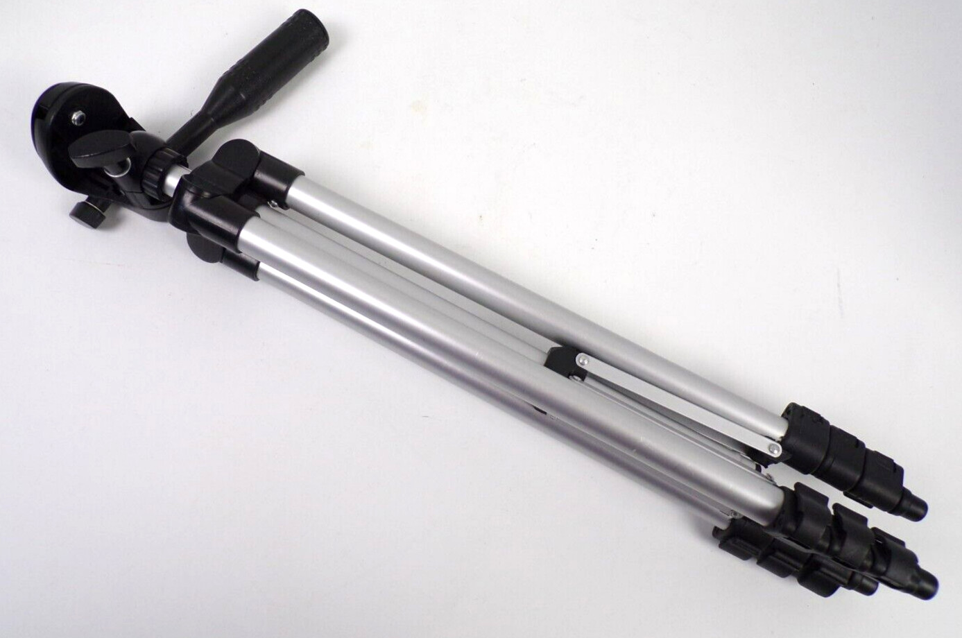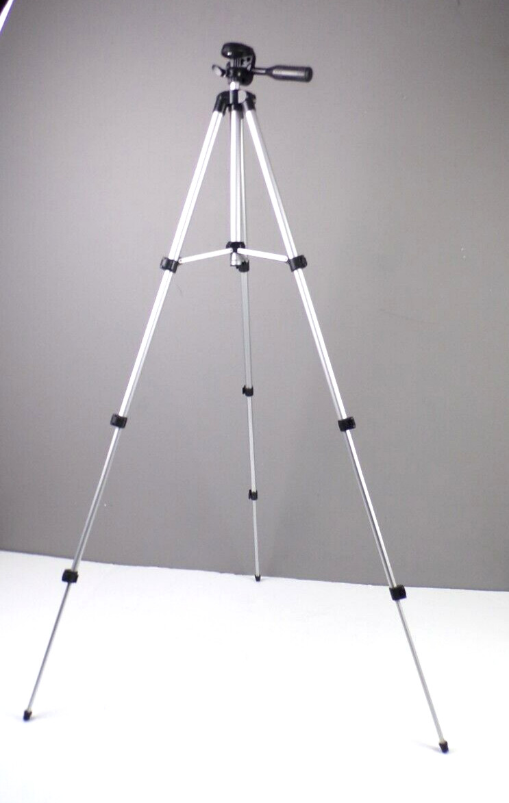 Unbranded Lightweight Tripod Silver Tone Expandable Pan Tilt Head 45 Tall