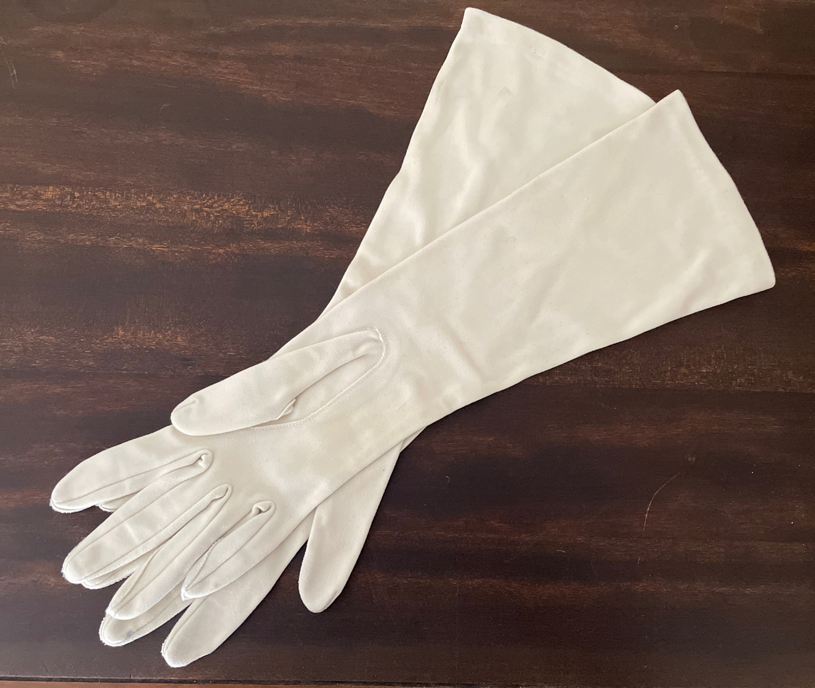 Near Mint Vintage Elbow Length 15 BONE Stretch Gloves Size 7 made in Italy