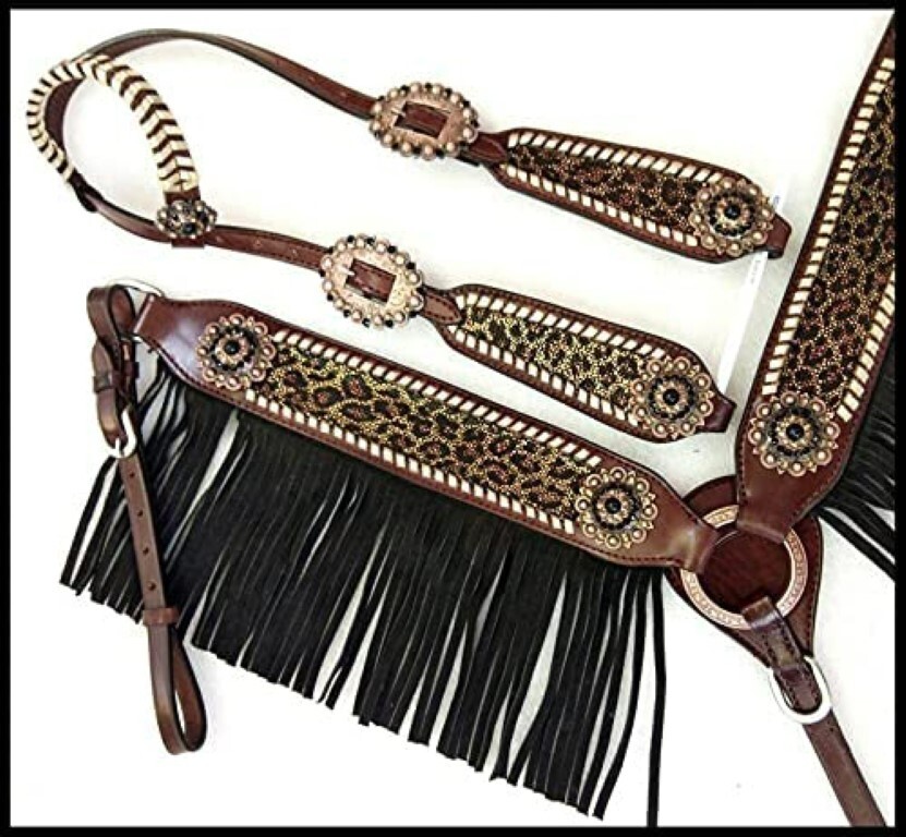 Hand Painted Fringe Tack Set with Headstall , Breast Collar and Reins.