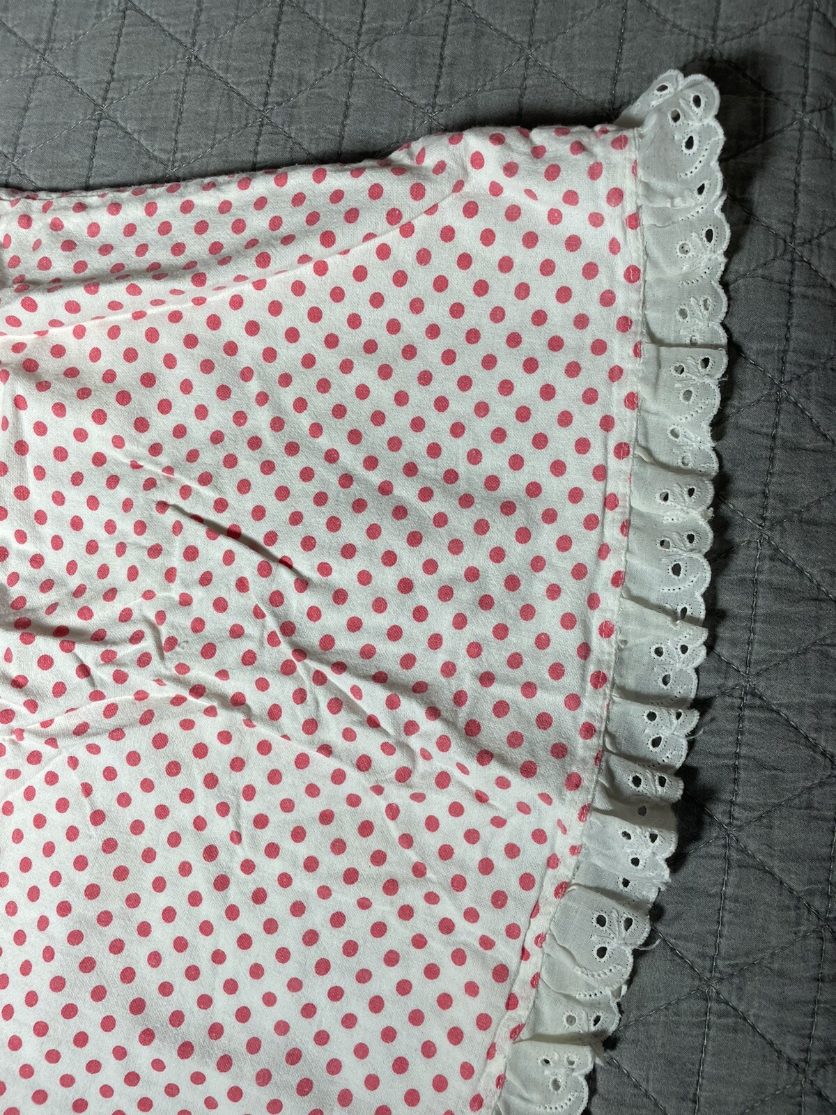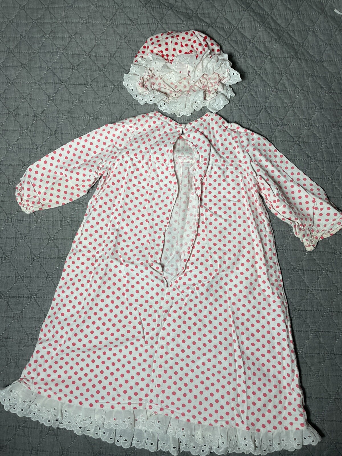 Vintage 70s Nightgown Dress And Cap Girls 12M White Red Polka Dots Long Length