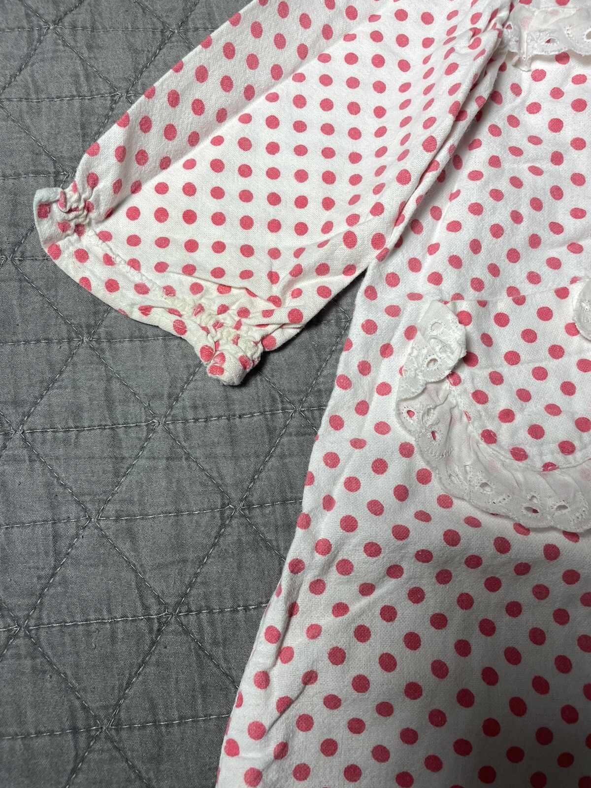 как выглядит Vintage 70s Nightgown Dress And Cap Girls 12M White Red Polka Dots Long Length фото