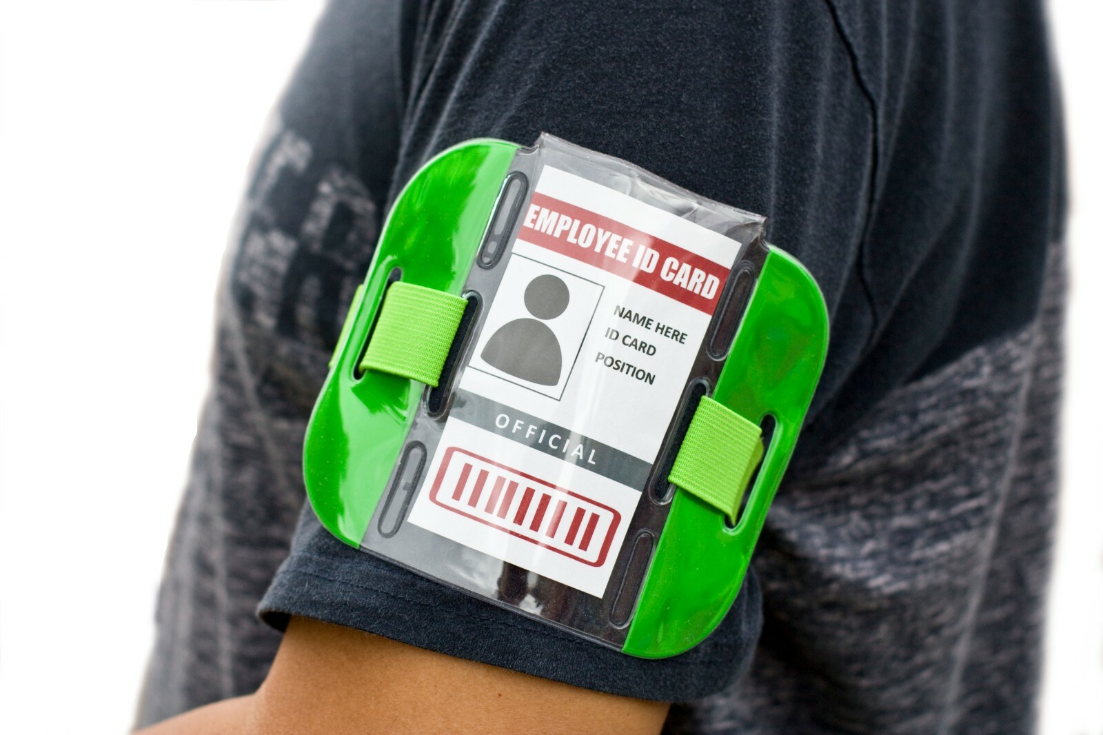 как выглядит 100 pc Reflective Green Arm Band Photo ID Badge Holder Vertical w/ Elastic Band фото