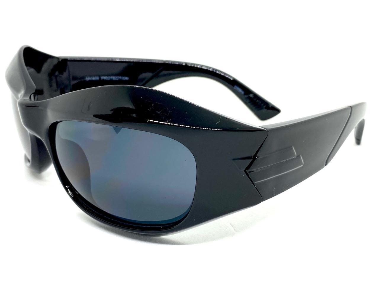 Oversized RETRO Sporty Wrap Party Raver SUN GLASSES Large Black Frame Dark Lens