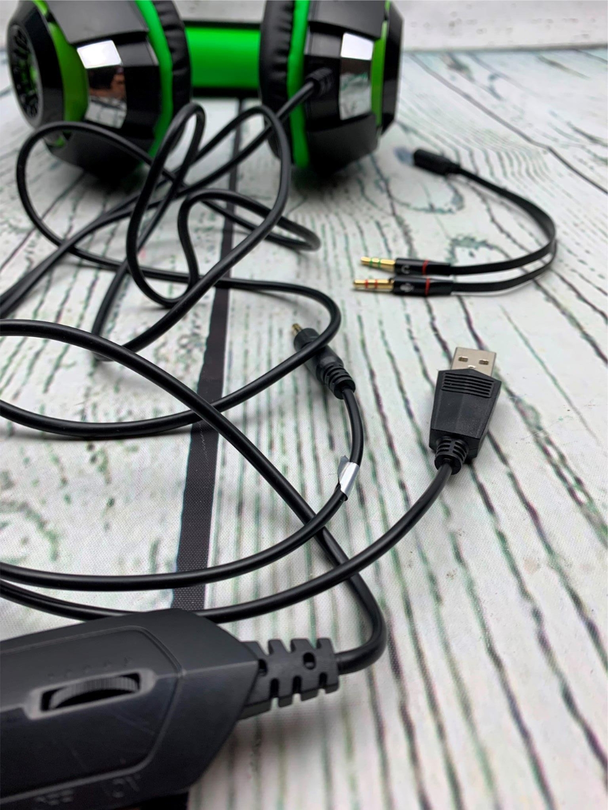 как выглядит LED Gaming Headset Green Console Over Ear With Splitter фото