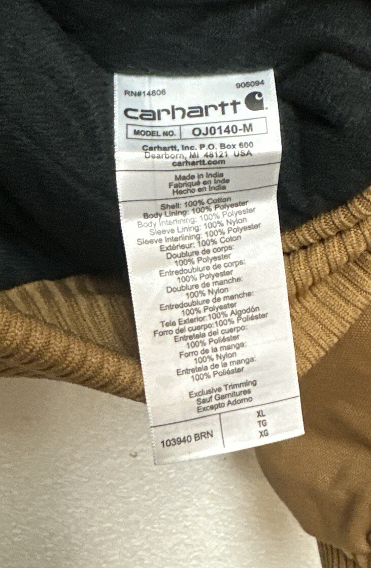 как выглядит Carhartt Mens 0J0140 Jacket Firm Duck Canvas Thermal Lined Loose Fit Brown sz XL фото
