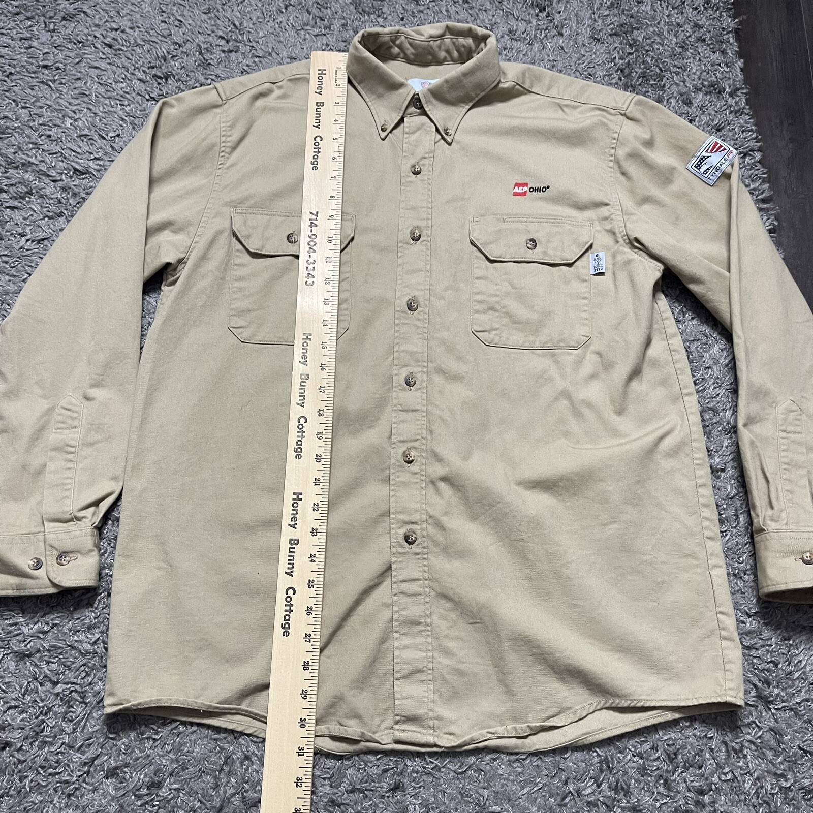 как выглядит Tyndale Shirt Mens Large Beige Long Sleeve Button Up Fire Resistant FR Logo фото