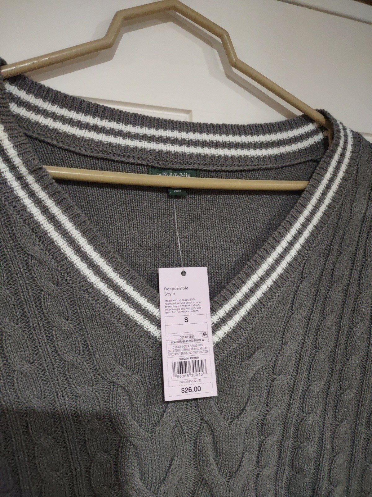 как выглядит Wild Fable Womens Oversized Gray V-neck Cable Knit Sweater Vest Sz S MSRP 26 фото