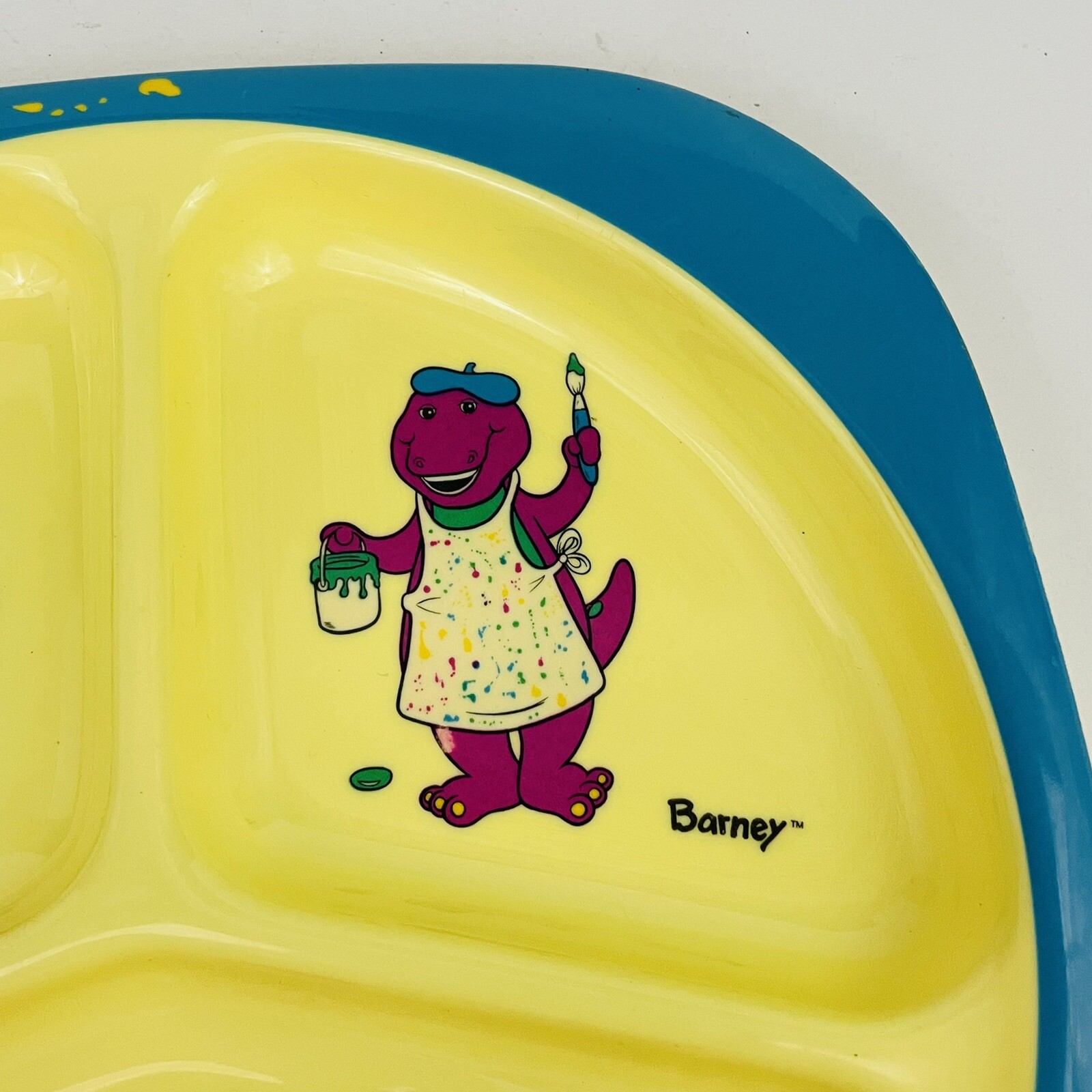 • Vintage Barney The Dinosaur Lot Barney Loves To Paint Divided Plate with Plush