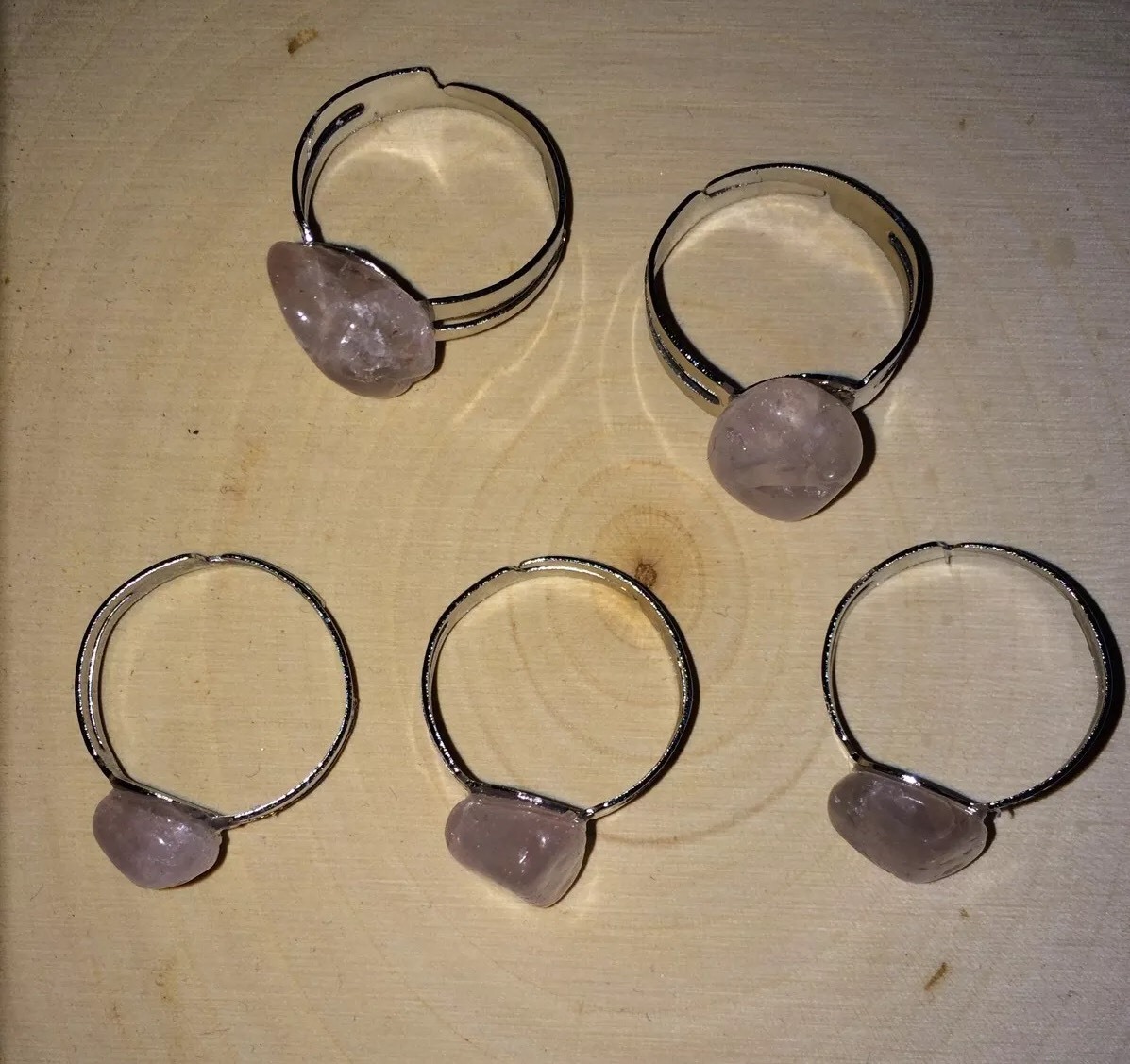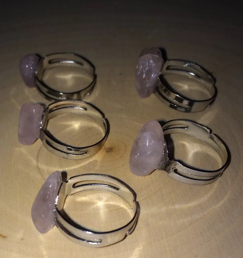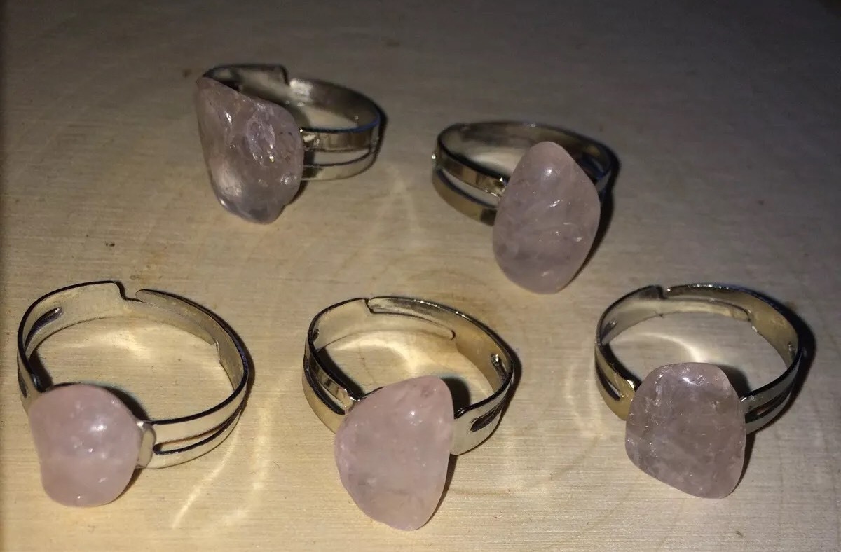 Handmade Rose Quartz Crystal Adjustable Handmade Ring
