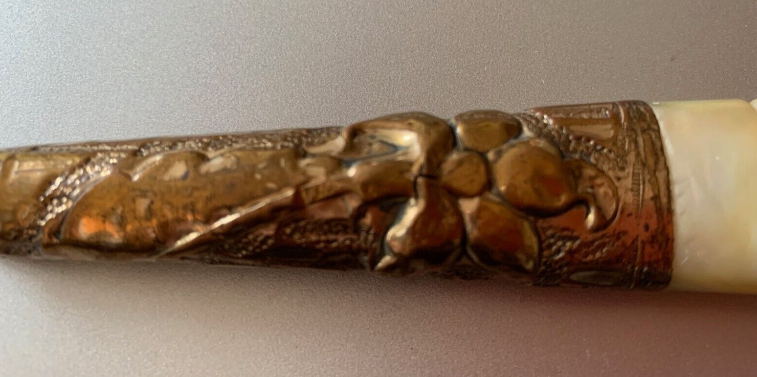 как выглядит Art Nouveau Parasol Handle, Rolled Gold and Mother-of-Pearl, Mono MFD, Lilies фото
