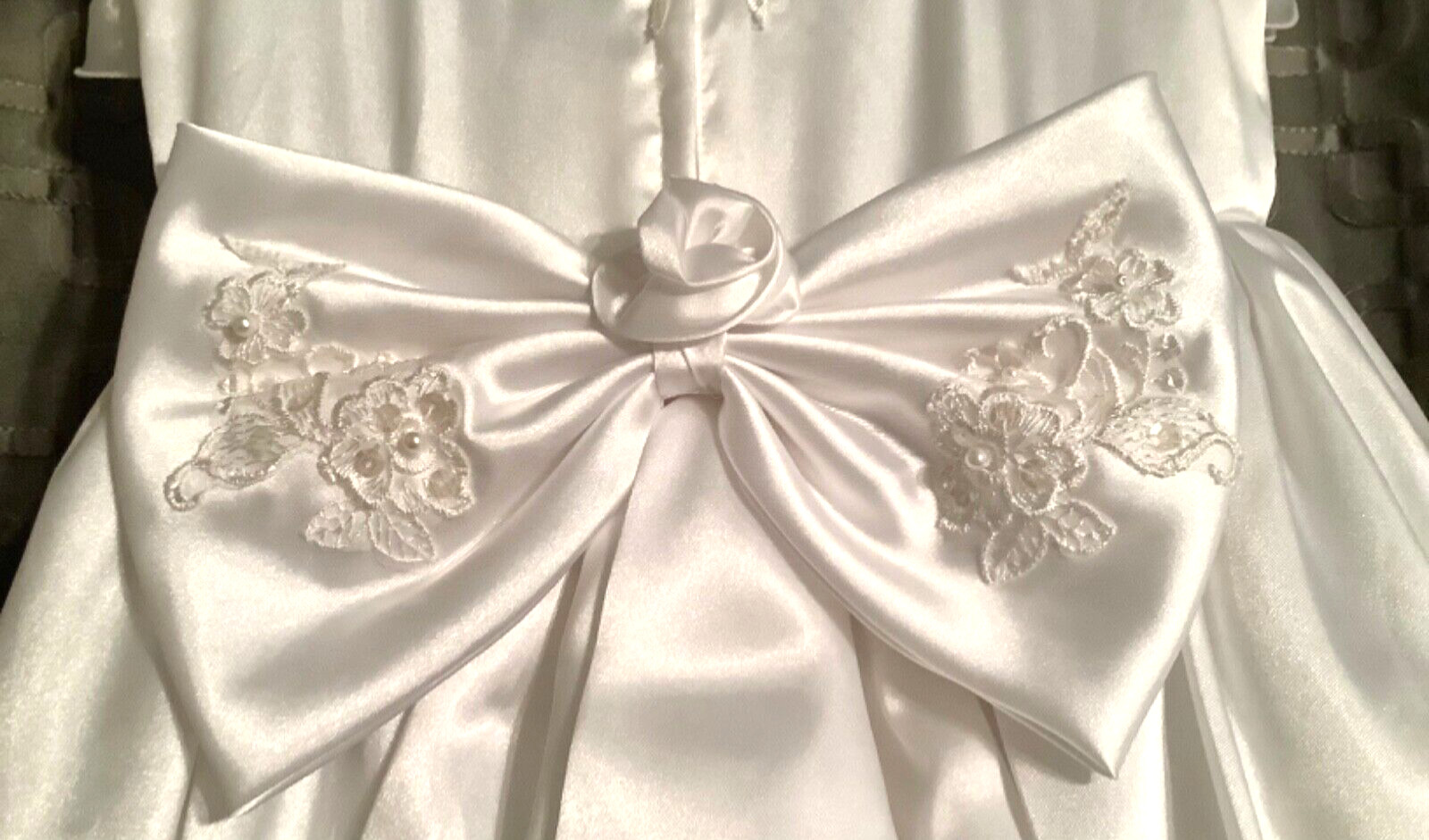 EDEN BRIDALS Dress Sz 5/6 First 1st Communion Flower Girl Pageant White Satin