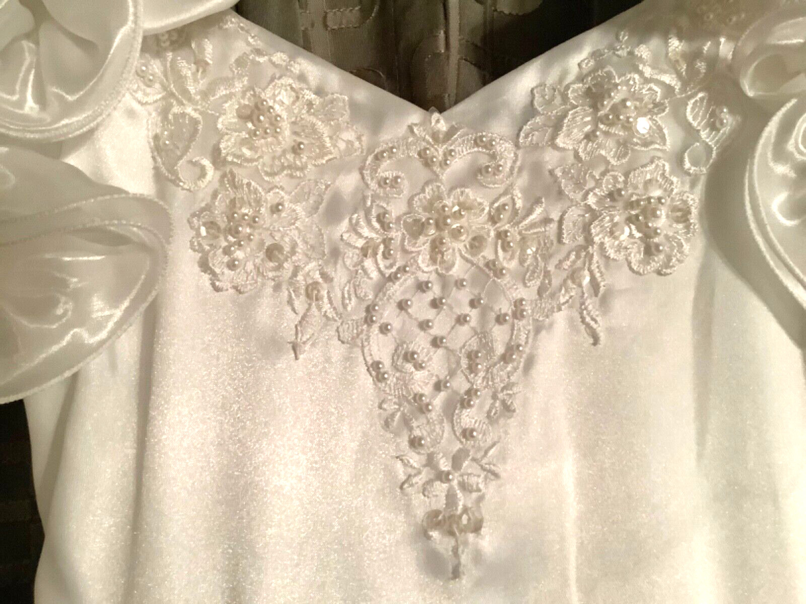 как выглядит EDEN BRIDALS Dress Sz 5/6 First 1st Communion Flower Girl Pageant White Satin фото
