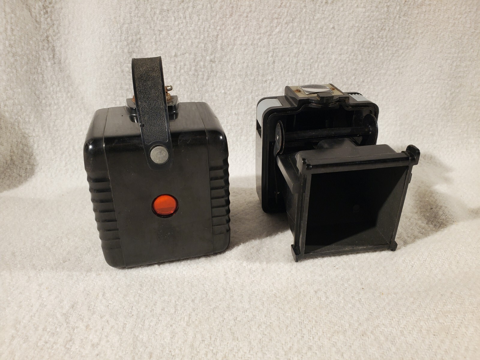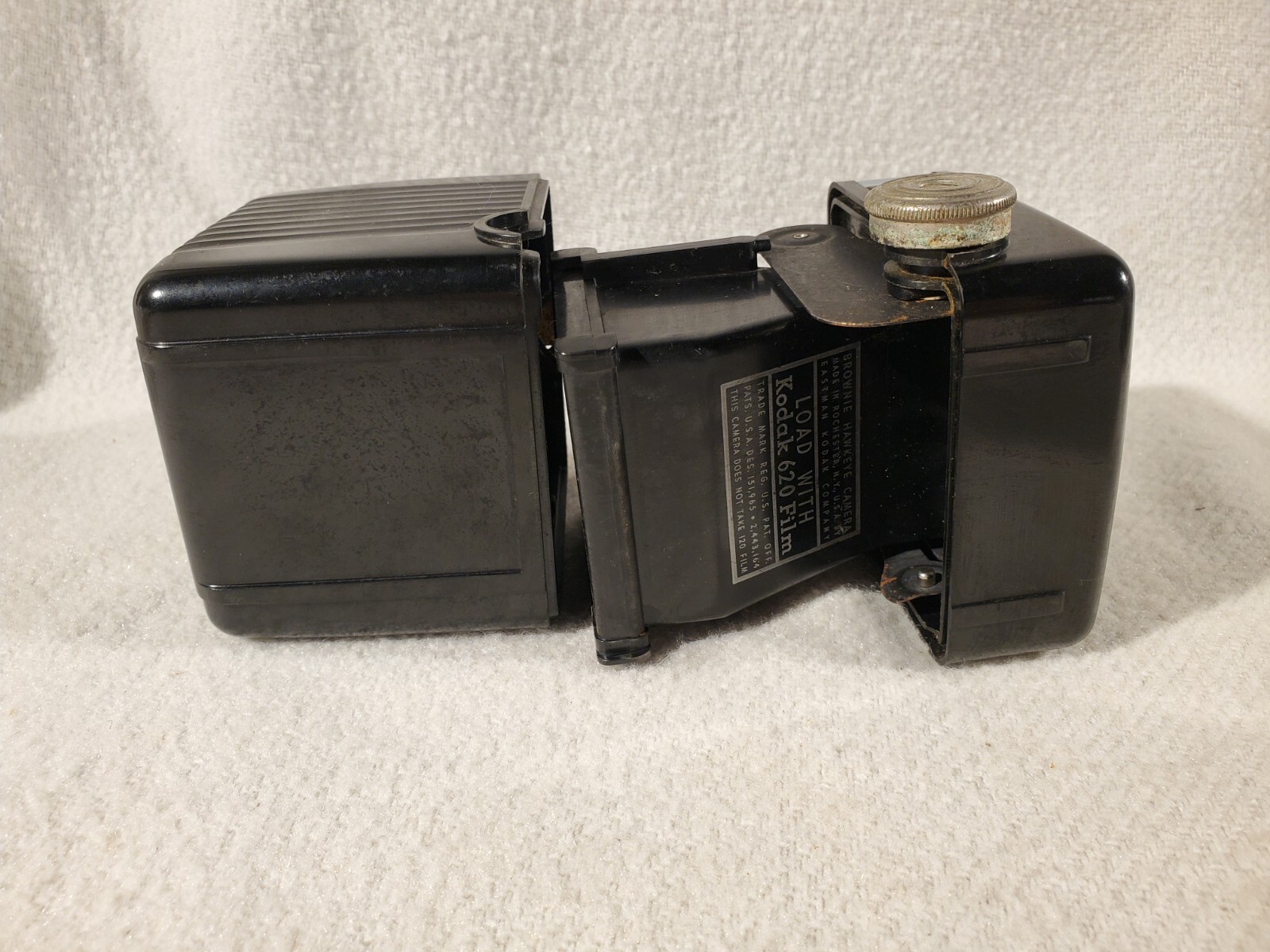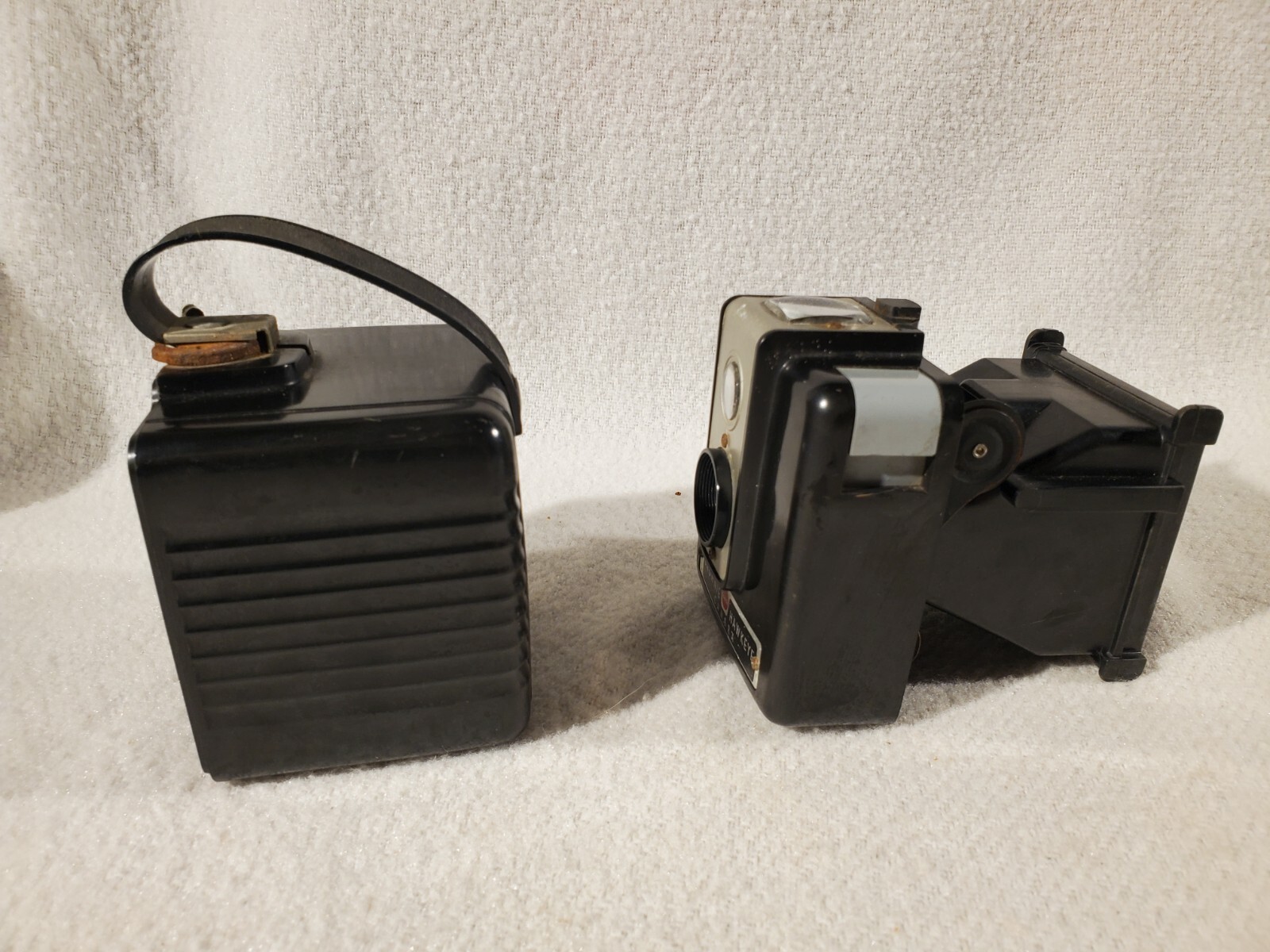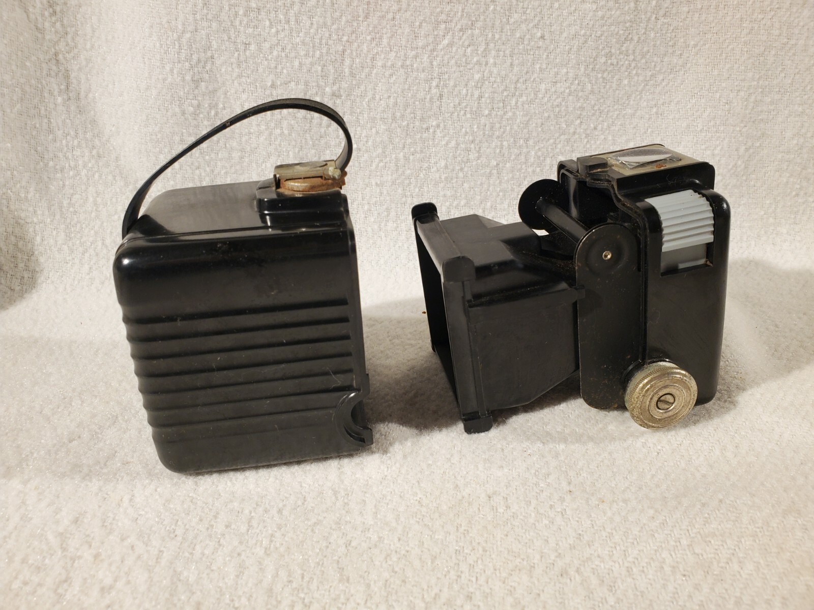 Vtg Antique Kodak Brownie Hawkeye Flash Model Box Camera in Leather Case